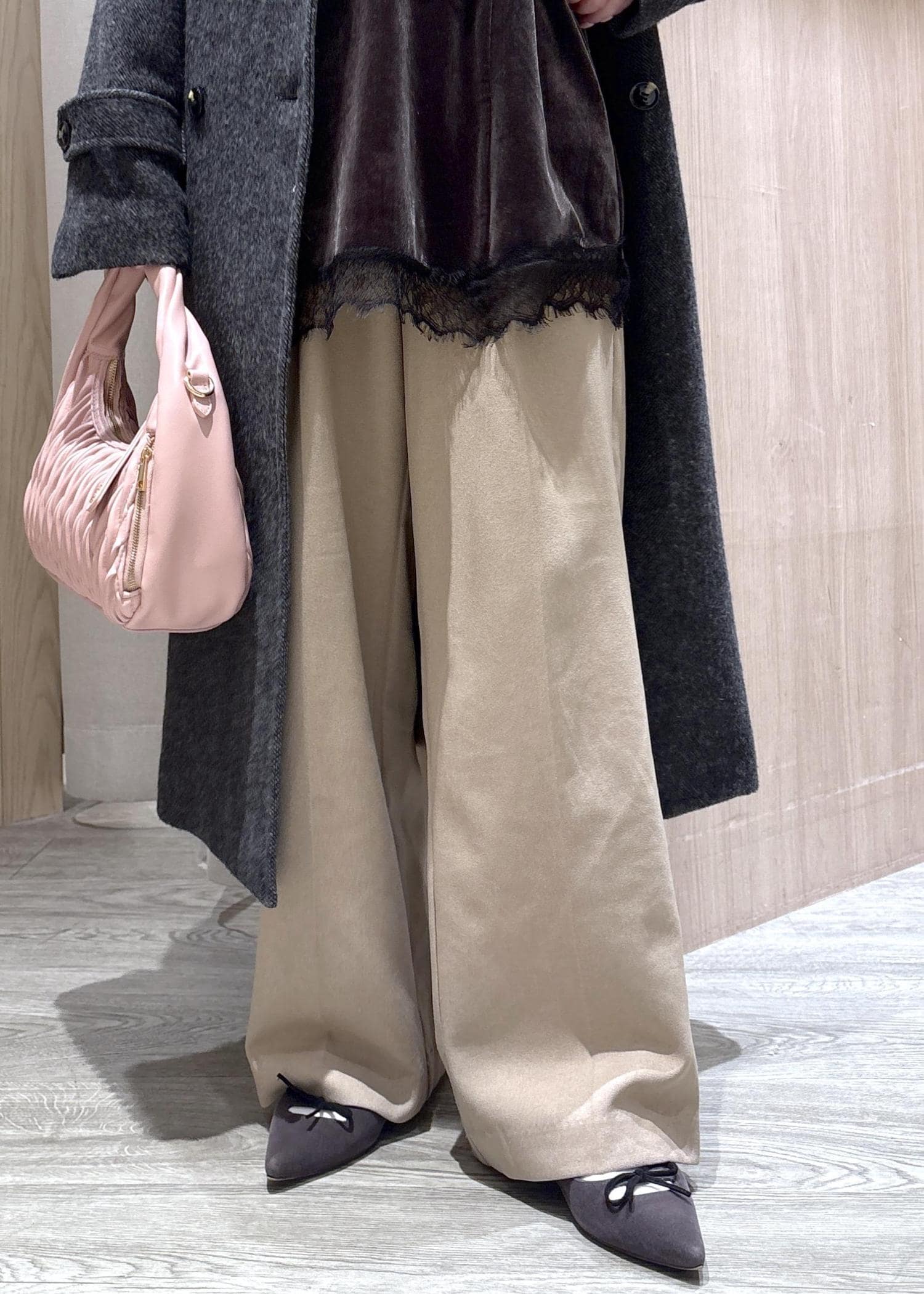 秋冬にぴったりなウーリッシュ素材で、ワイドすぎないのでお仕事用にもとてもオススメです。 -