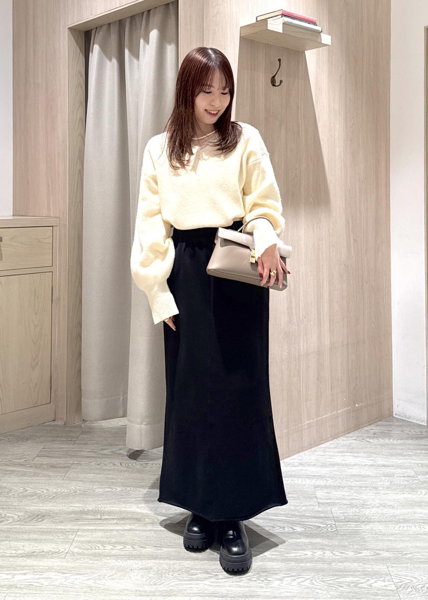 お尻が隠れる丈感で、腰回りはややフィット感あります!冬のレイヤードスタイルにおすすめです! -