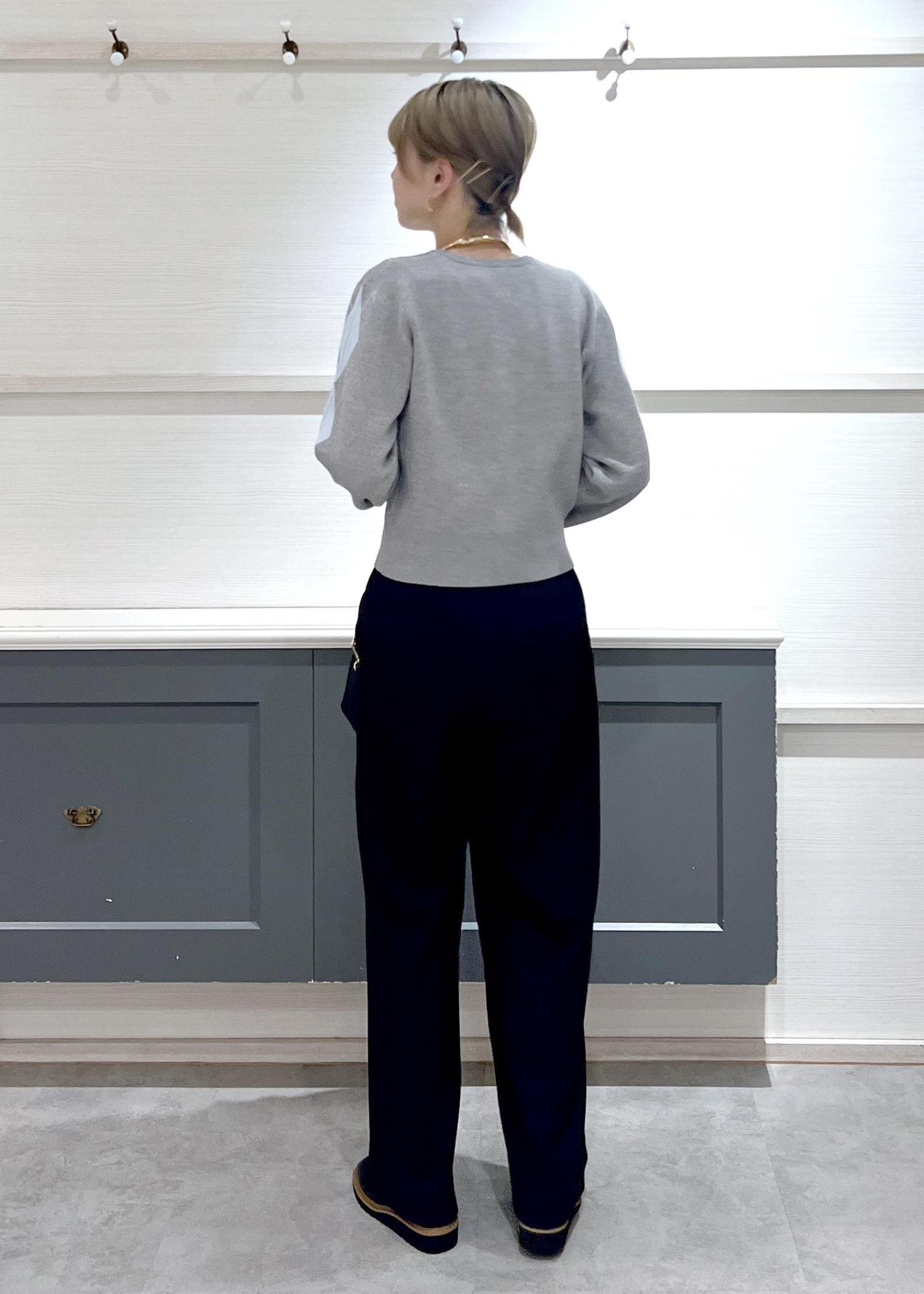 中は程よくゆったりしてるので、シャツやリブニットをレイヤードしても◎