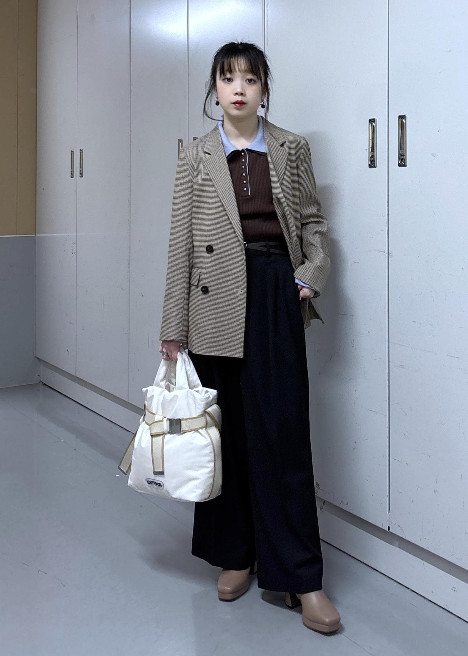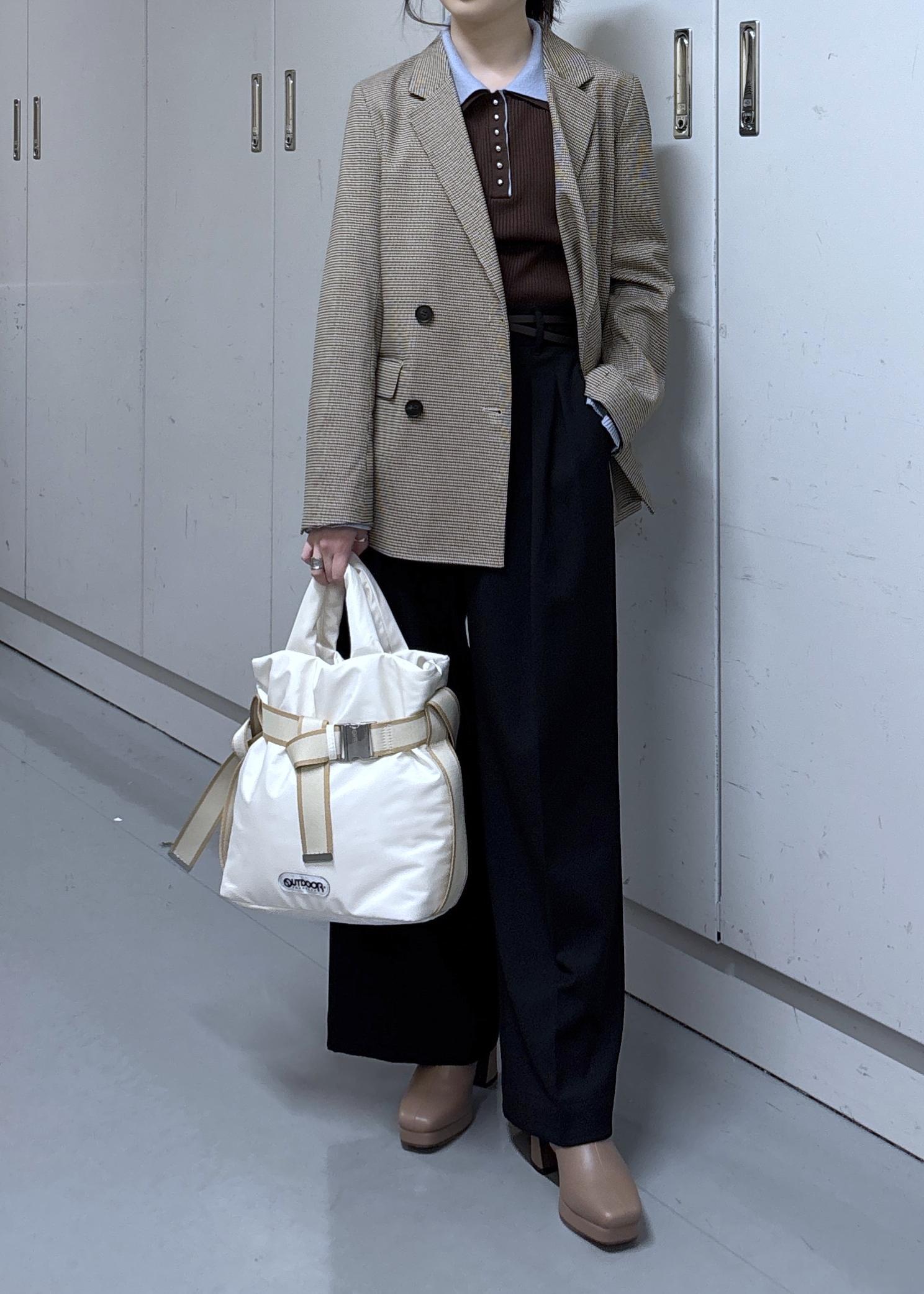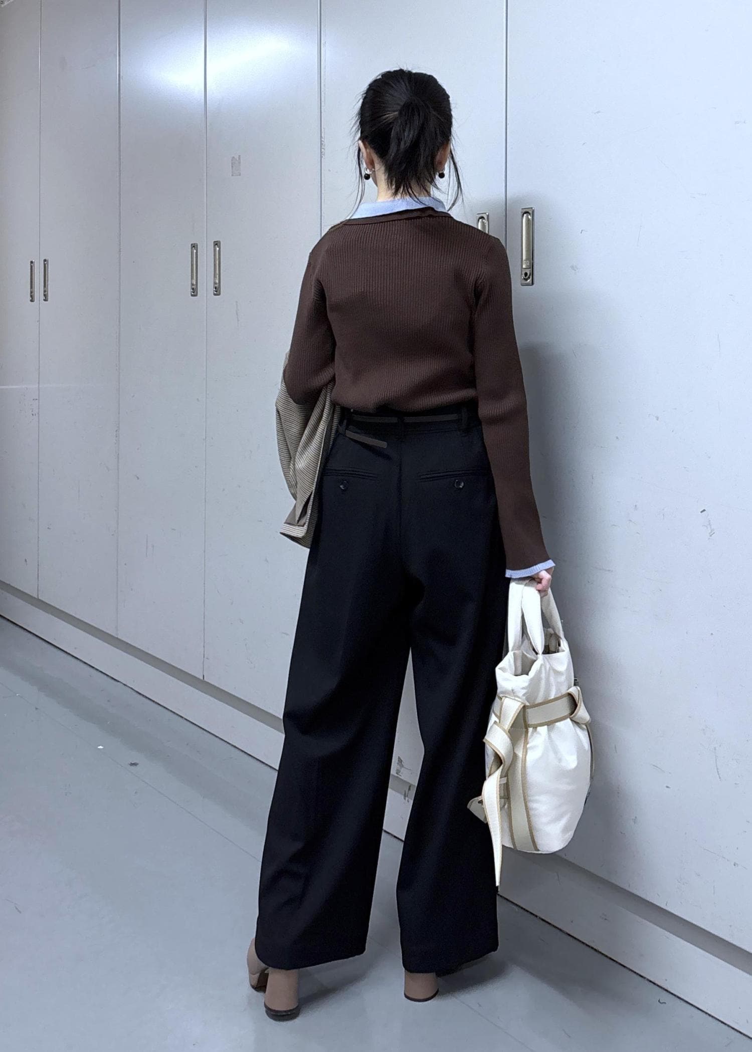 ツータックで腰周りはスッキリしつつ、ゆるっとしたルーズなワイドシルエットのバランスが綺麗です✨
