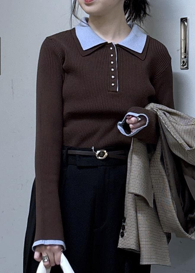VISダブルカラーポロニットトップスブラウン / F¥5,929レビューもちもち素材が着心地抜群!