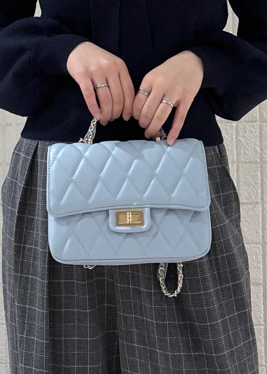 VISチェーンハンドルキルティングショルダーバッグ/2WAY・一部WEB限定カラーサックス / F¥5,535レビューキルティングデザインとゴールドチェーンが可愛いバッグ!