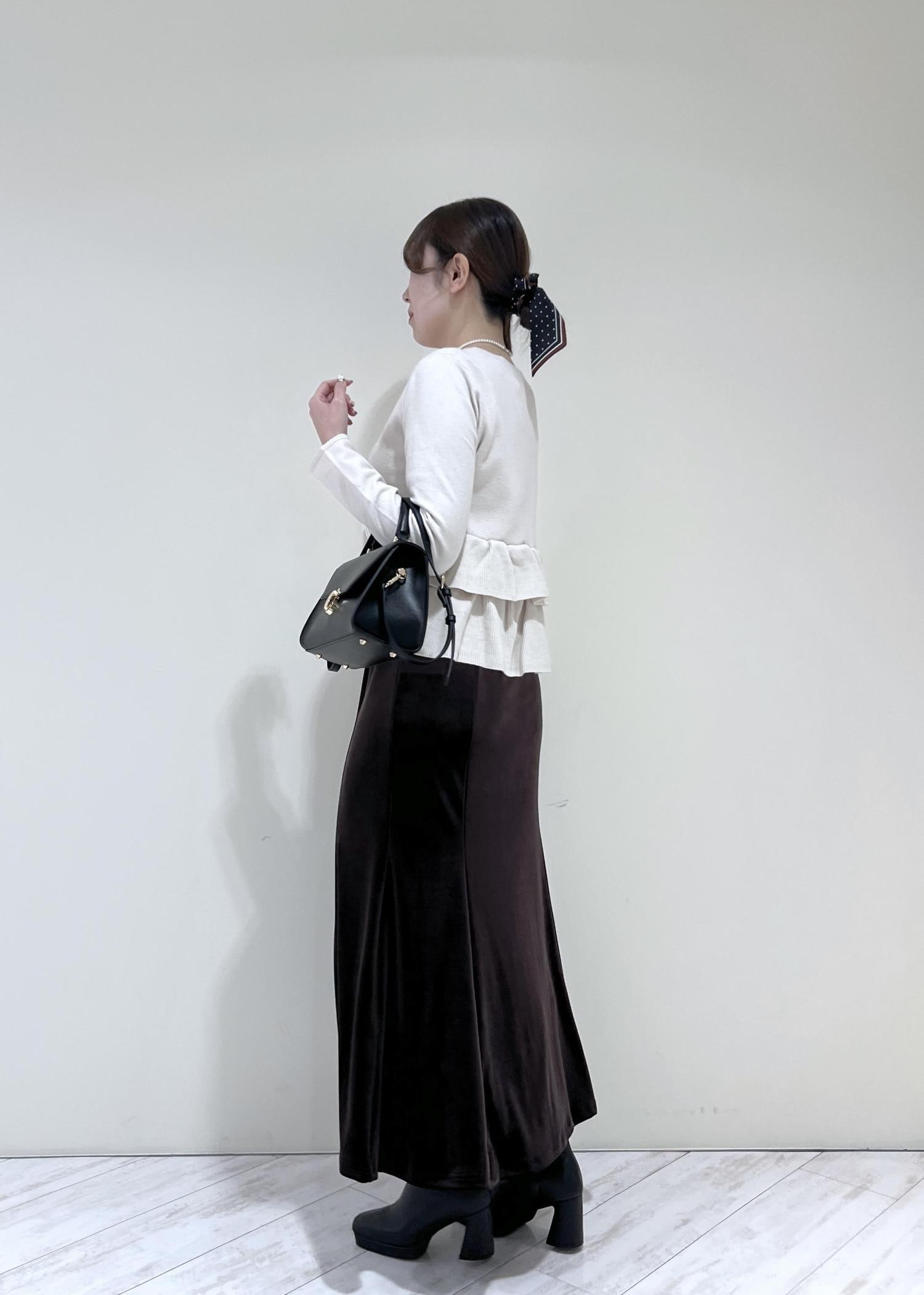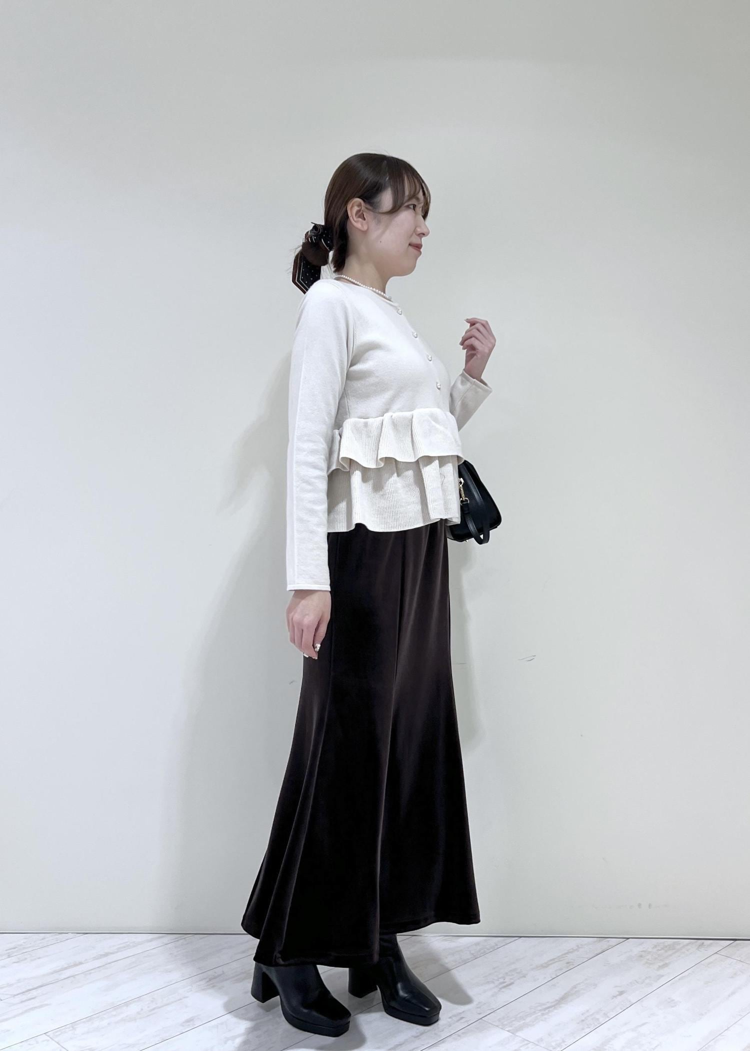 VISベロアナロースカートダークブラウン / M¥6,589レビューベロア素材が上品見えする1枚です!ウエストは全体的にゴムなので着心地も楽ちんです。丈は身長164cmでくるぶし上でした◎