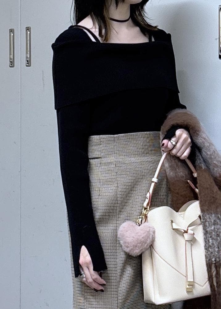 オフショルニットも肩にマチ付きで華奢な方でも基本的にずり落ちにくくなっています◎