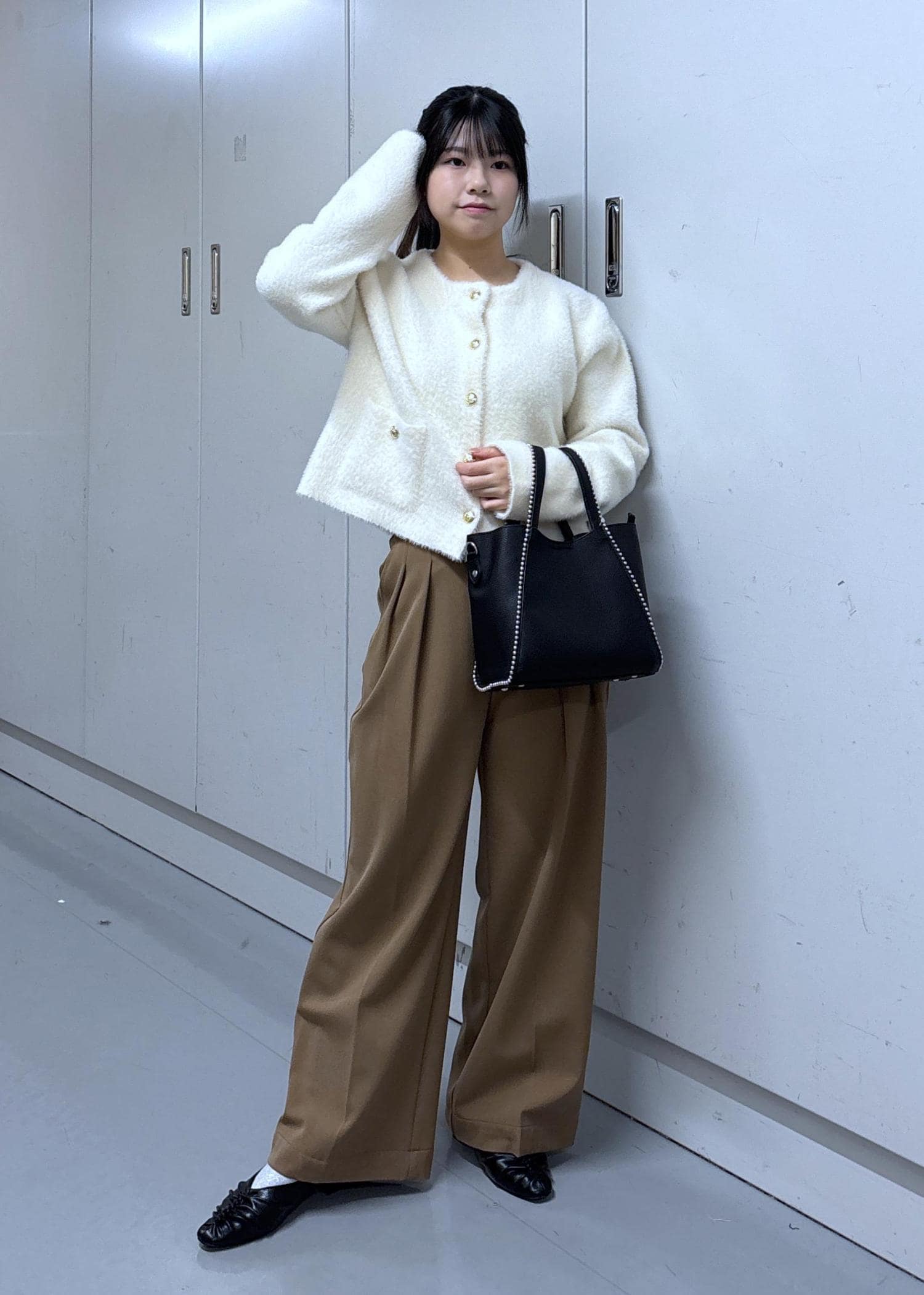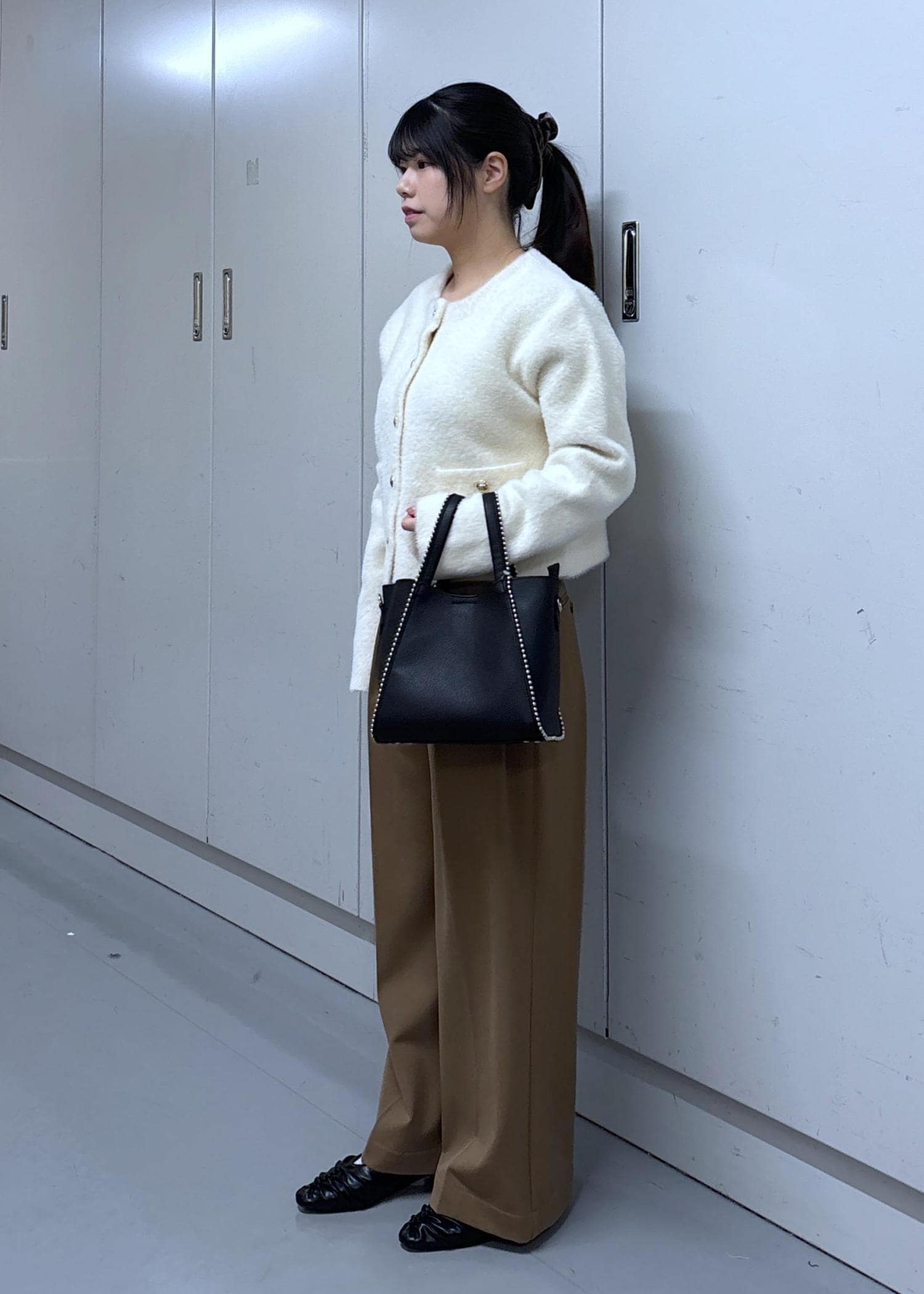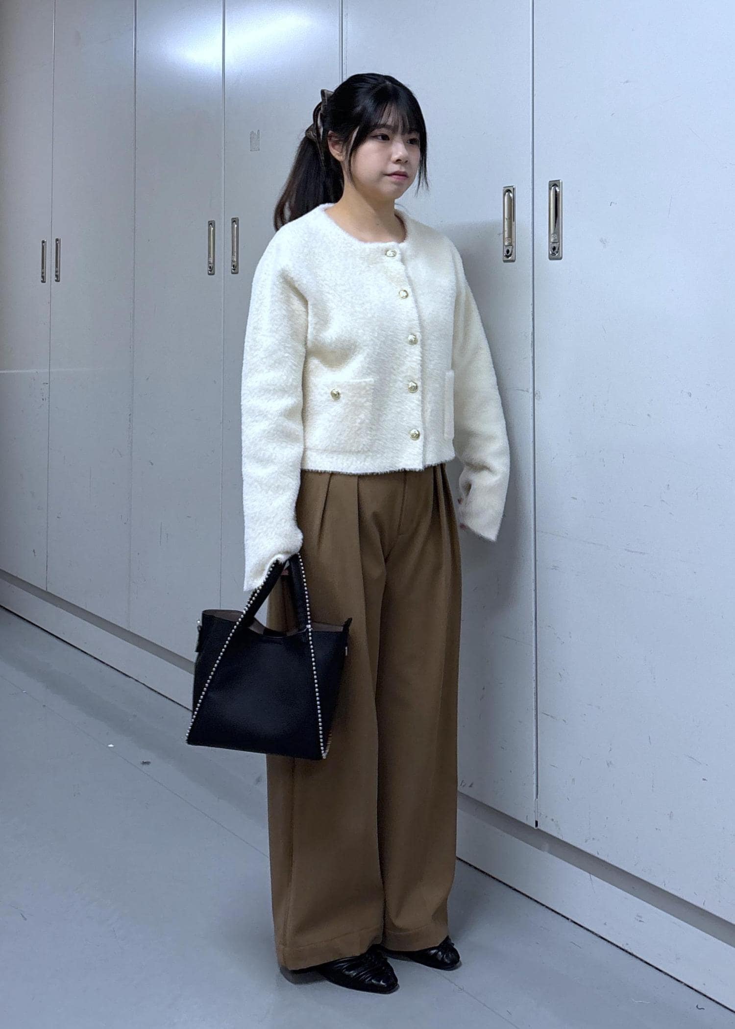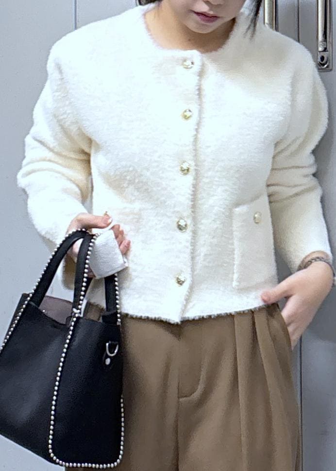 VIS接結ミニフェザーニットジャケットカーディガン/一部WEB限定カラーオフホワイト / F¥6,919レビュー153cmで、腰あたりの丈感です。