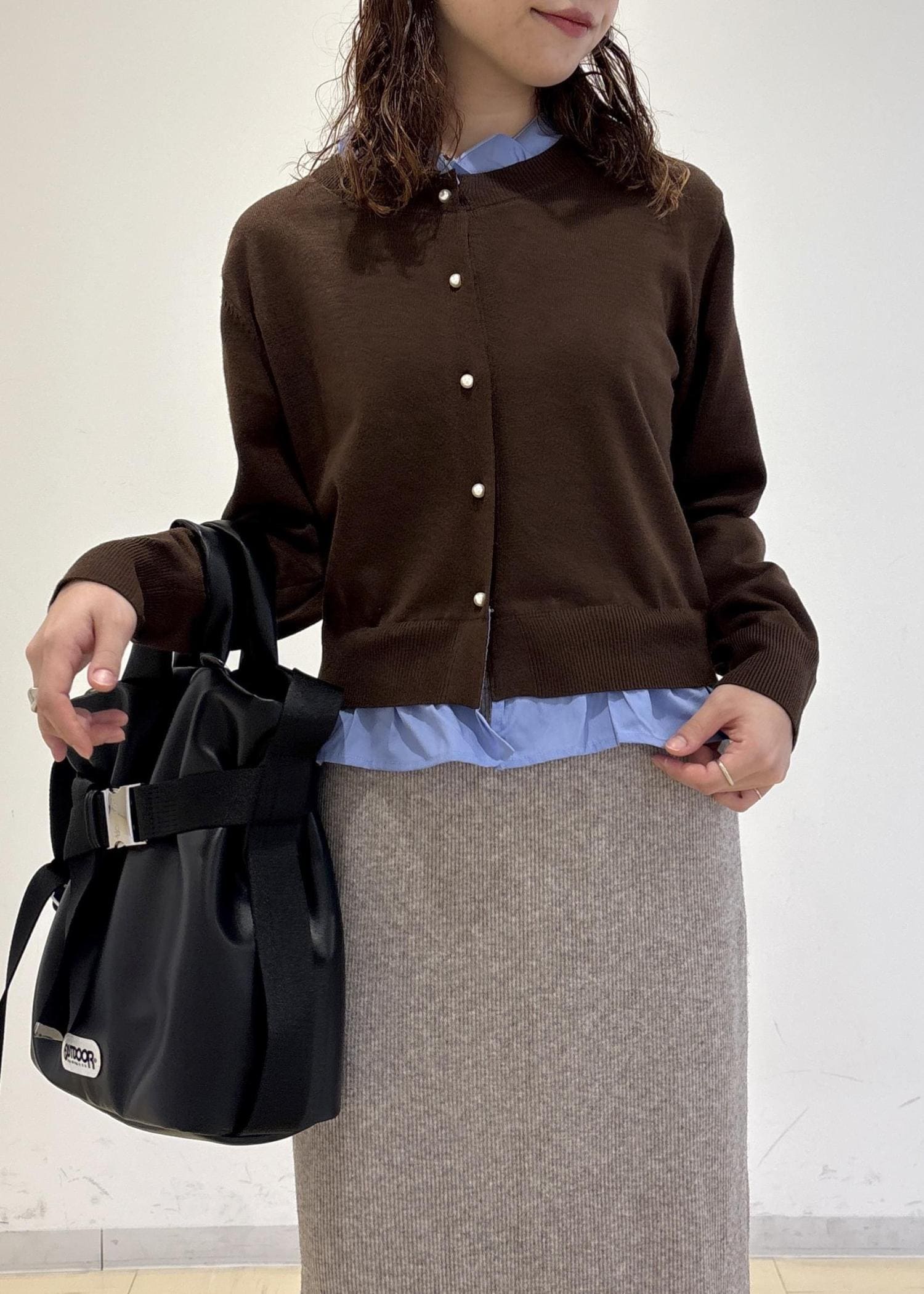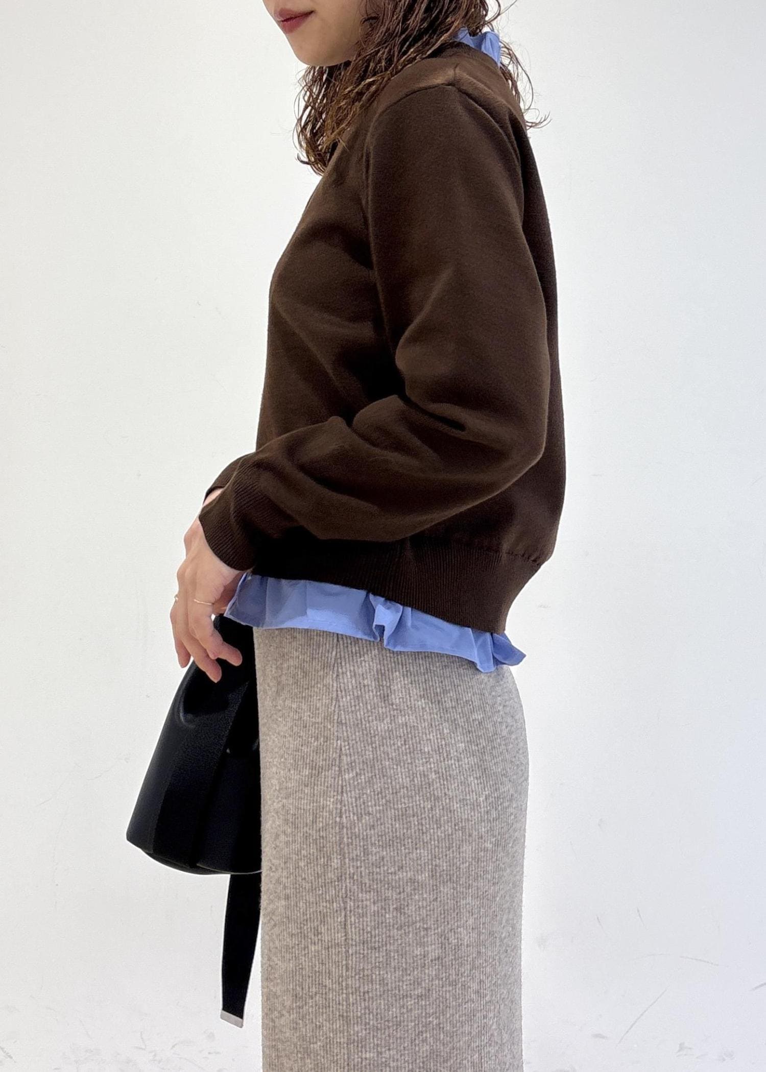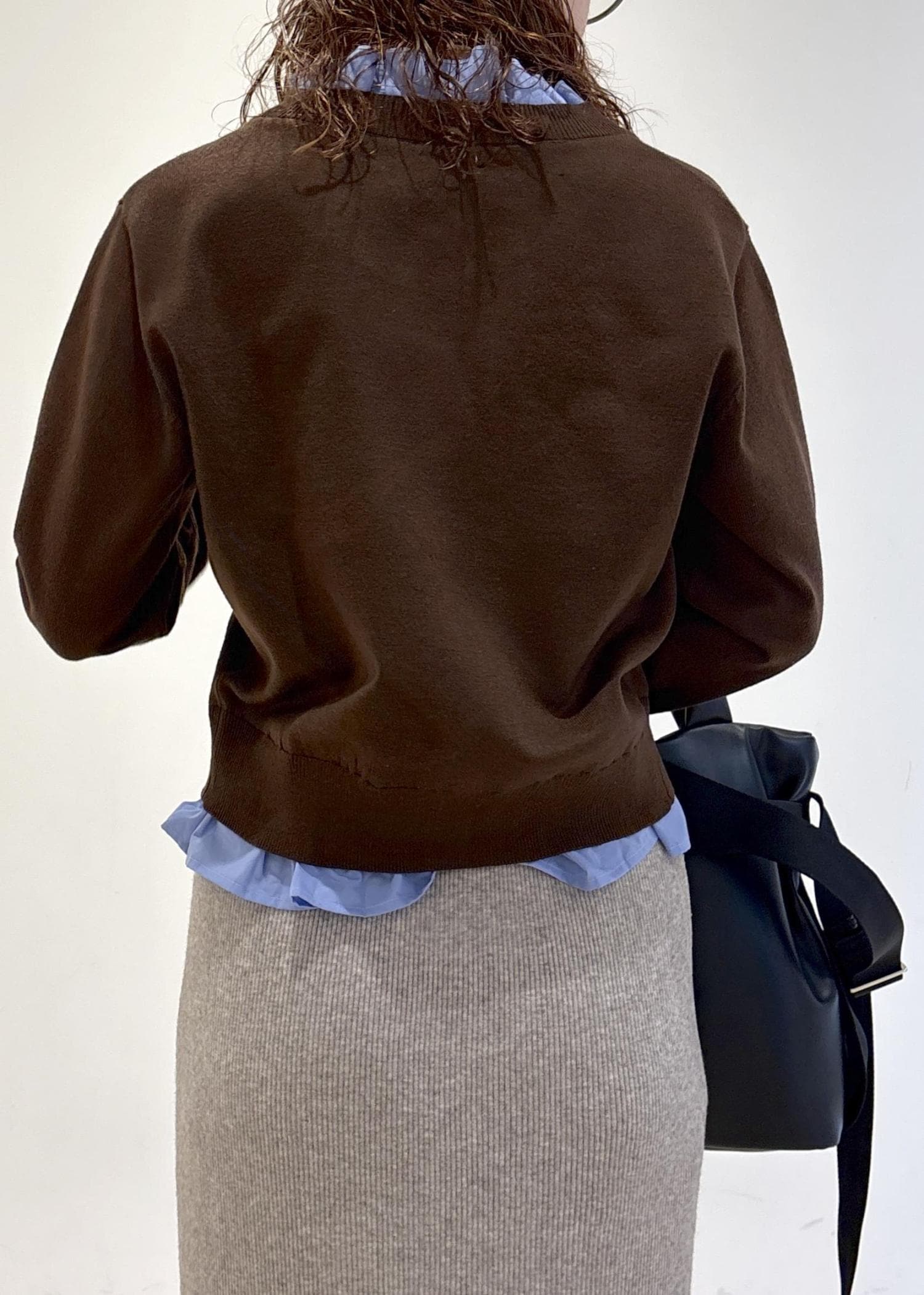 VIS【美得】フリル襟ドッキングニットカーディガントップスダークブラウン / F¥5,929レビュー身長160cm着用で骨盤が隠れる丈感です。