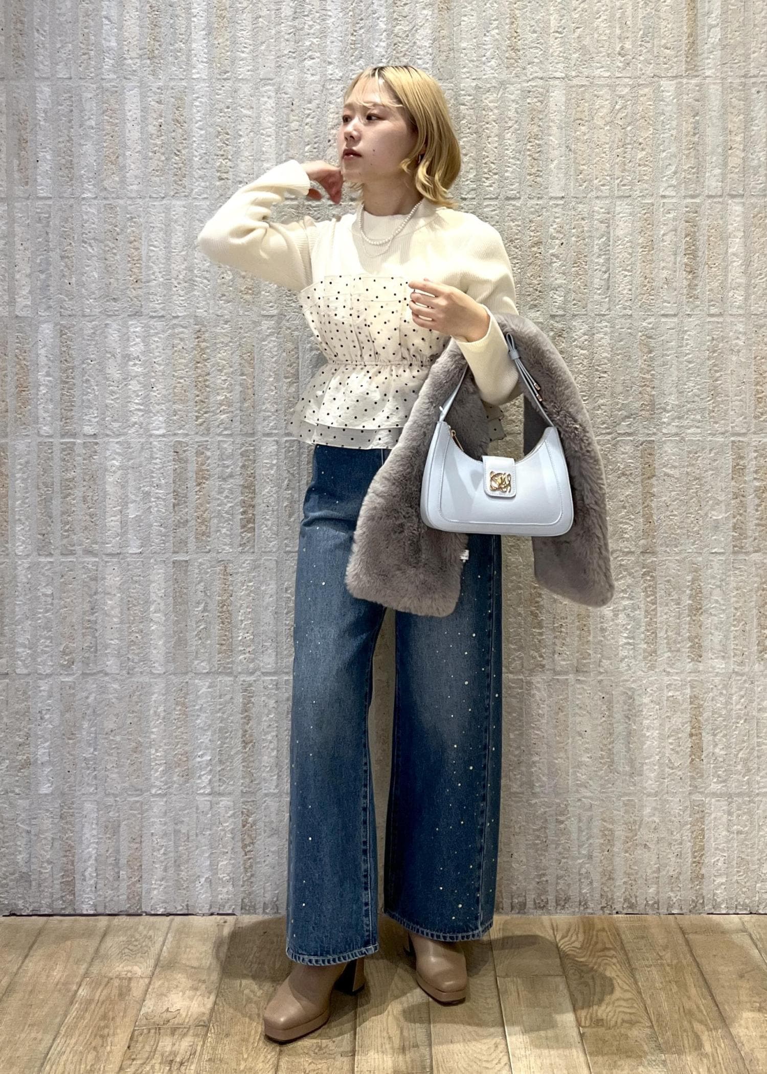 デニムと合わせてフェミニンカジュアルコーデにしてみました!
