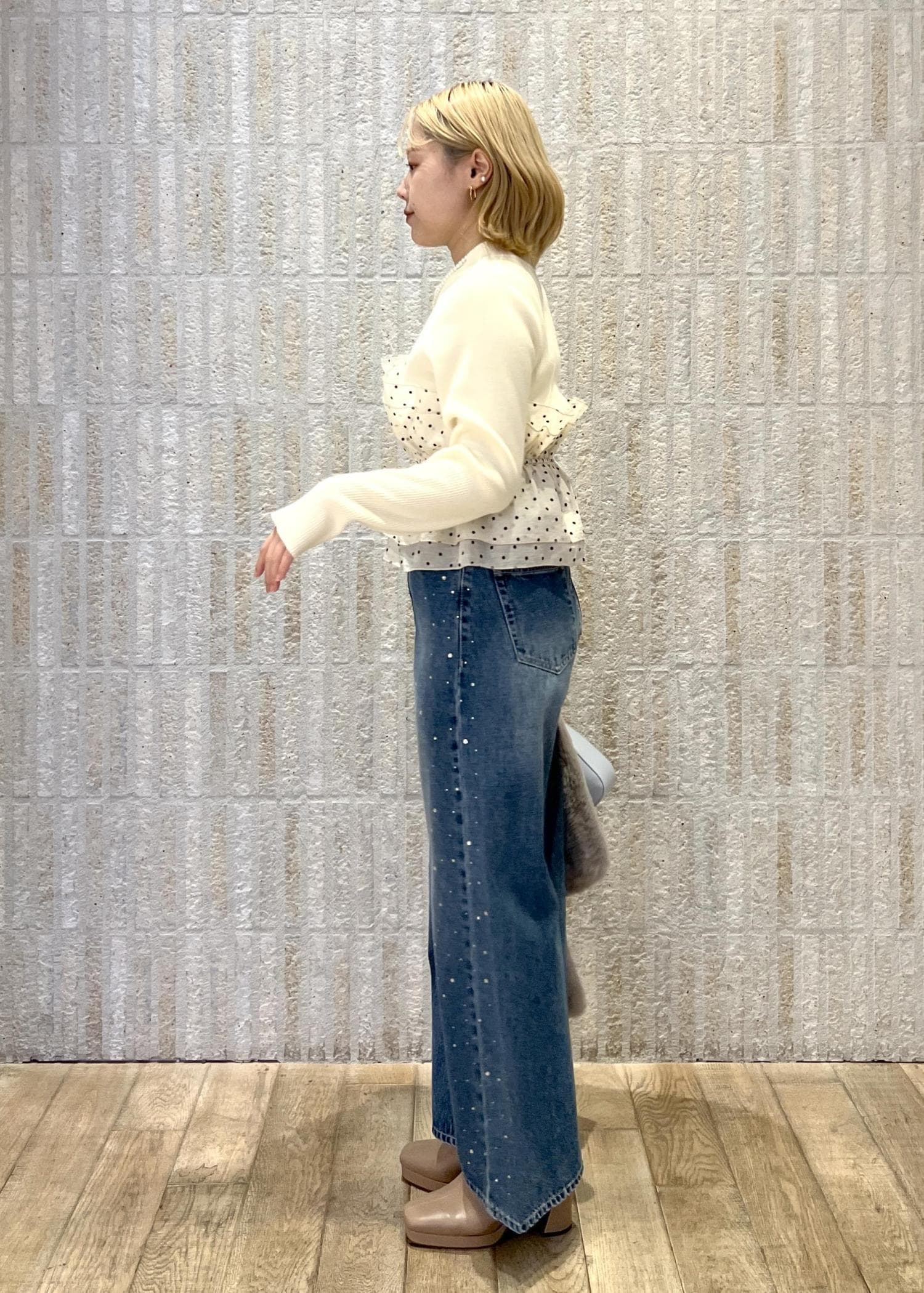 VISビジューデニムパンツブルー /¥6,327レビューサイドのラインストーンがトレンド感を上げてくれる