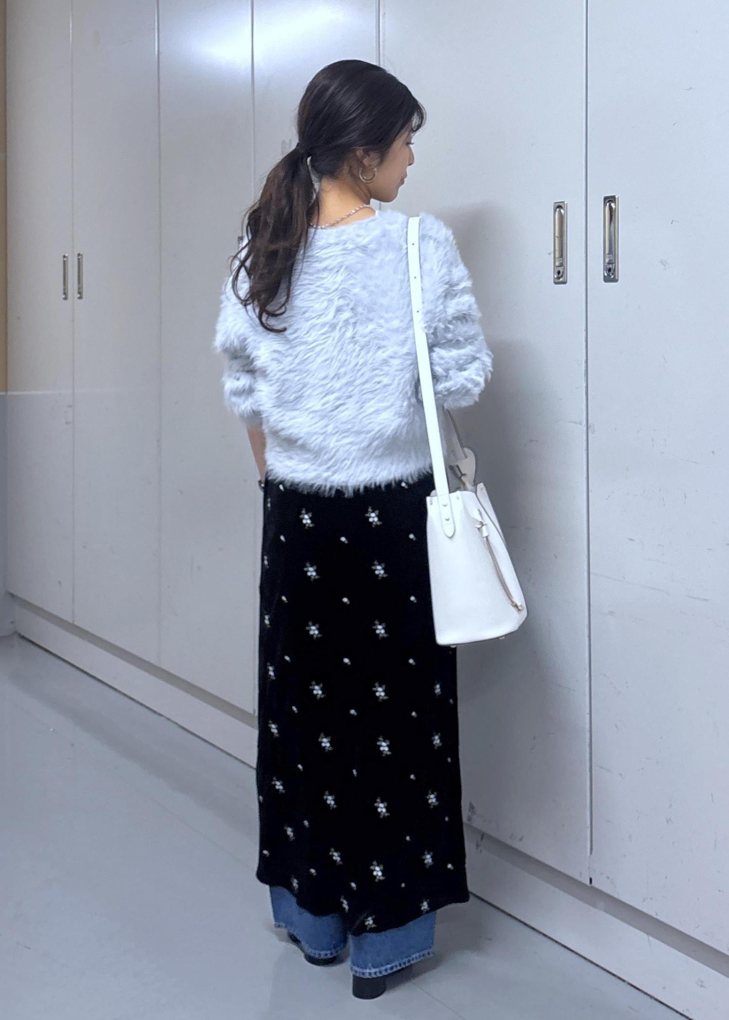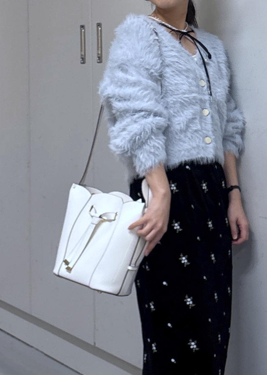 VISラビットライクVネックカーディガン/イージーケア・WEB限定カラーサックス / F¥5,336レビュー156cm/F着用。着丈はお尻が見える長さで、袖丈は手が隠れる長さです。ふわふわの質感で着るだけで冬らしい着こなしができます‼︎チクチクしないので直接肌にあたっても着心地◎落ち感のあるニットなのでもこもこしないのも嬉しいです♪