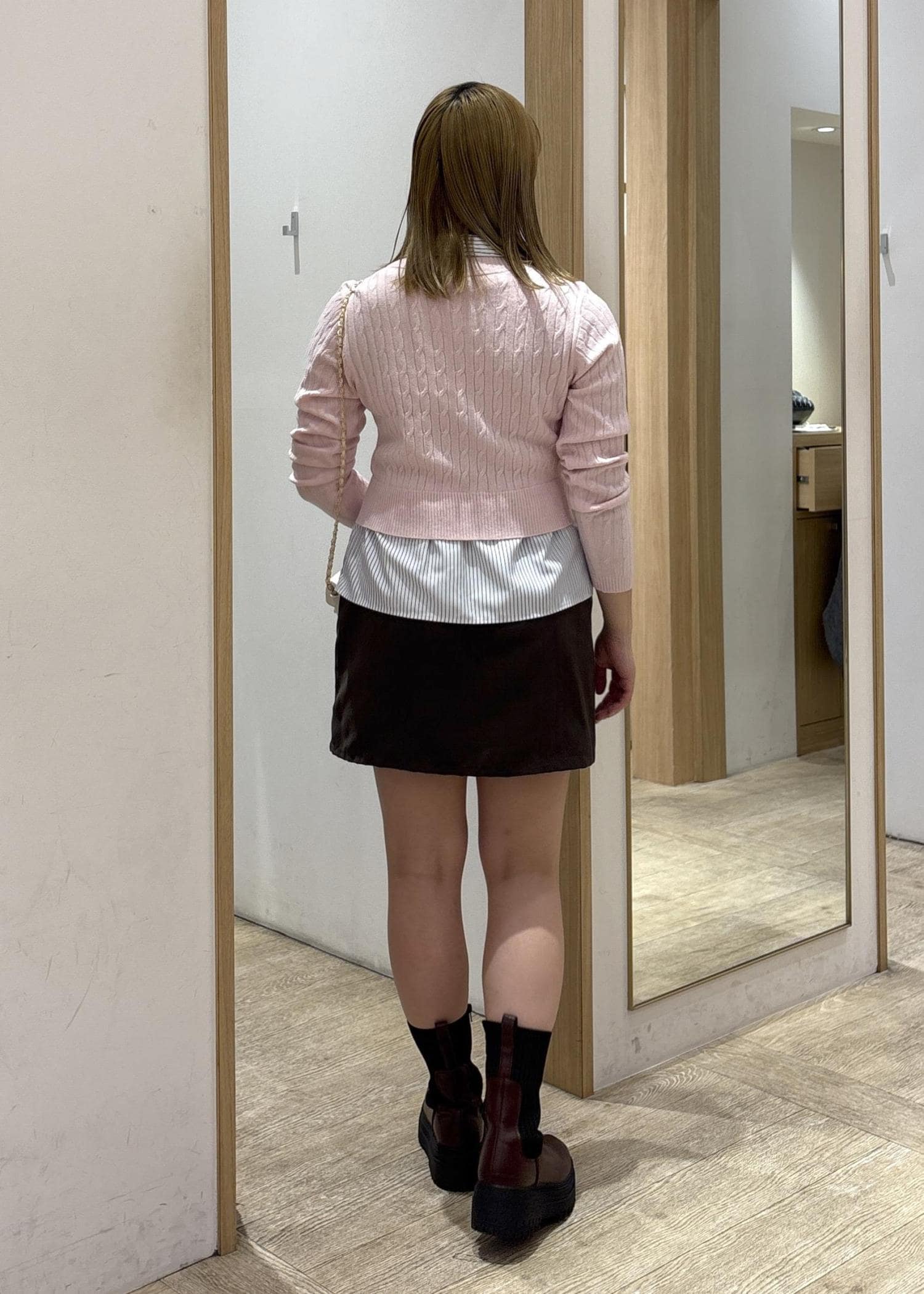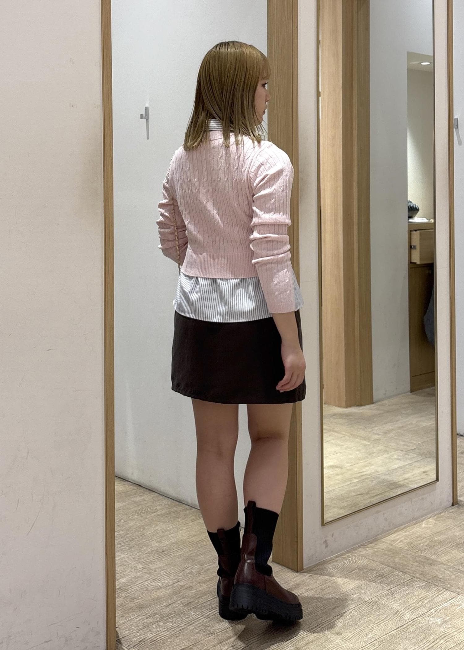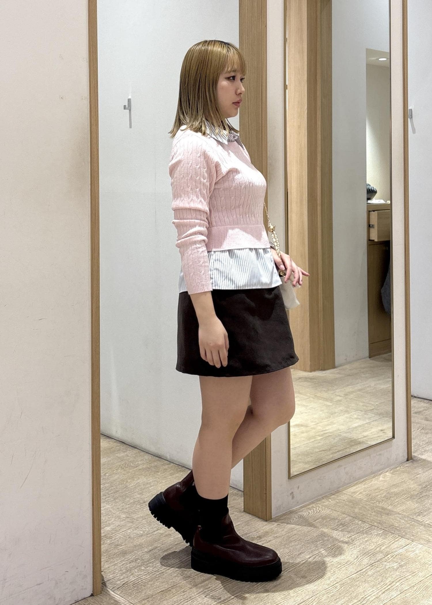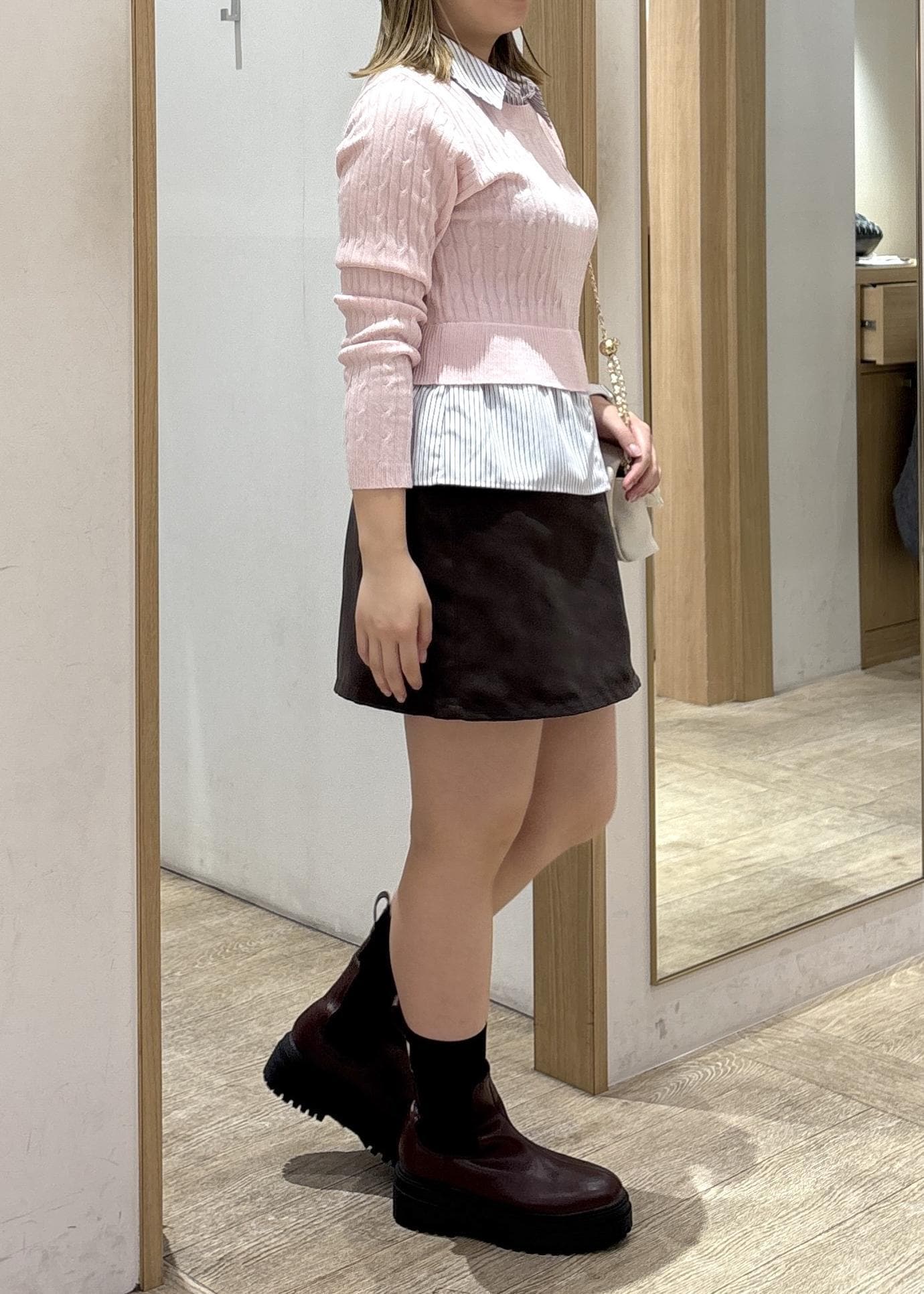 首元が詰まってる分、足を出して抜け感を意識しました!