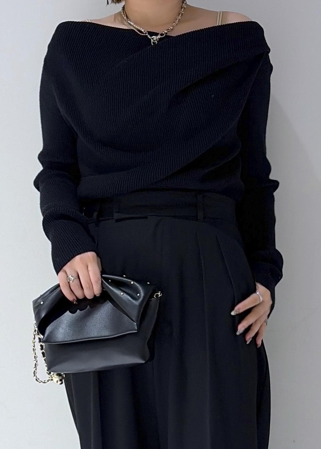 予約 2BUY10%OFFVIS【美得】もちもちドレープリブニットトップス/イージーケアブラック / F¥4,389レビューぴちっとしすぎないゆったりとした大きさです!