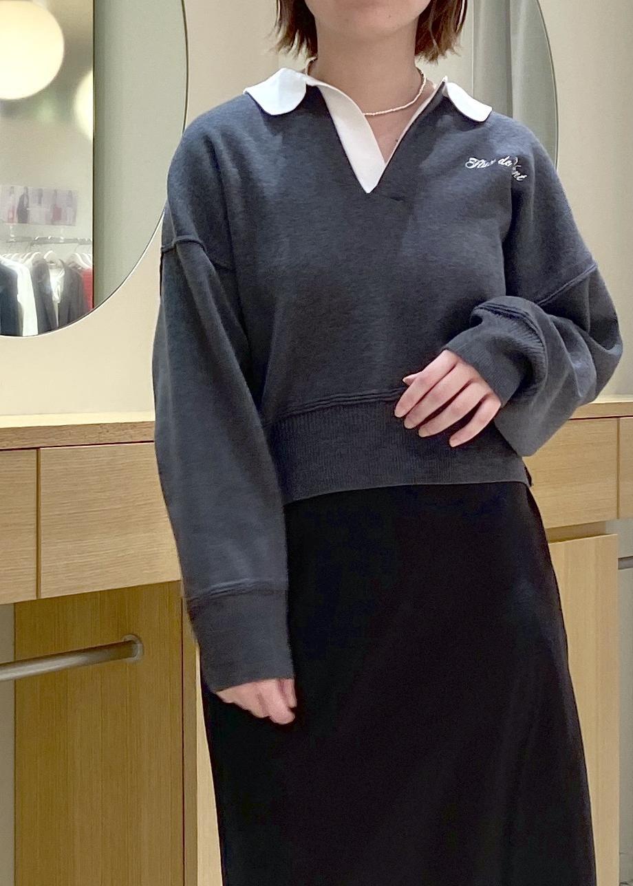 VISワンポイント刺繍ポロニットプルオーバーチャコール / F¥6,589レビュースウェットのような素材のトップスなので