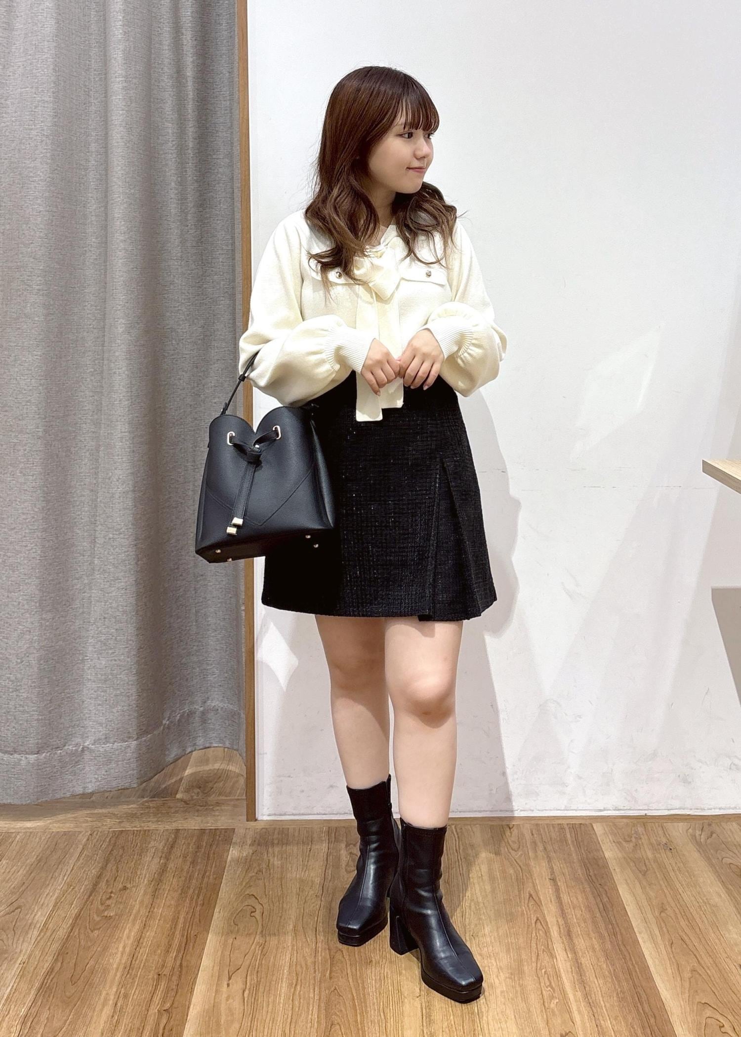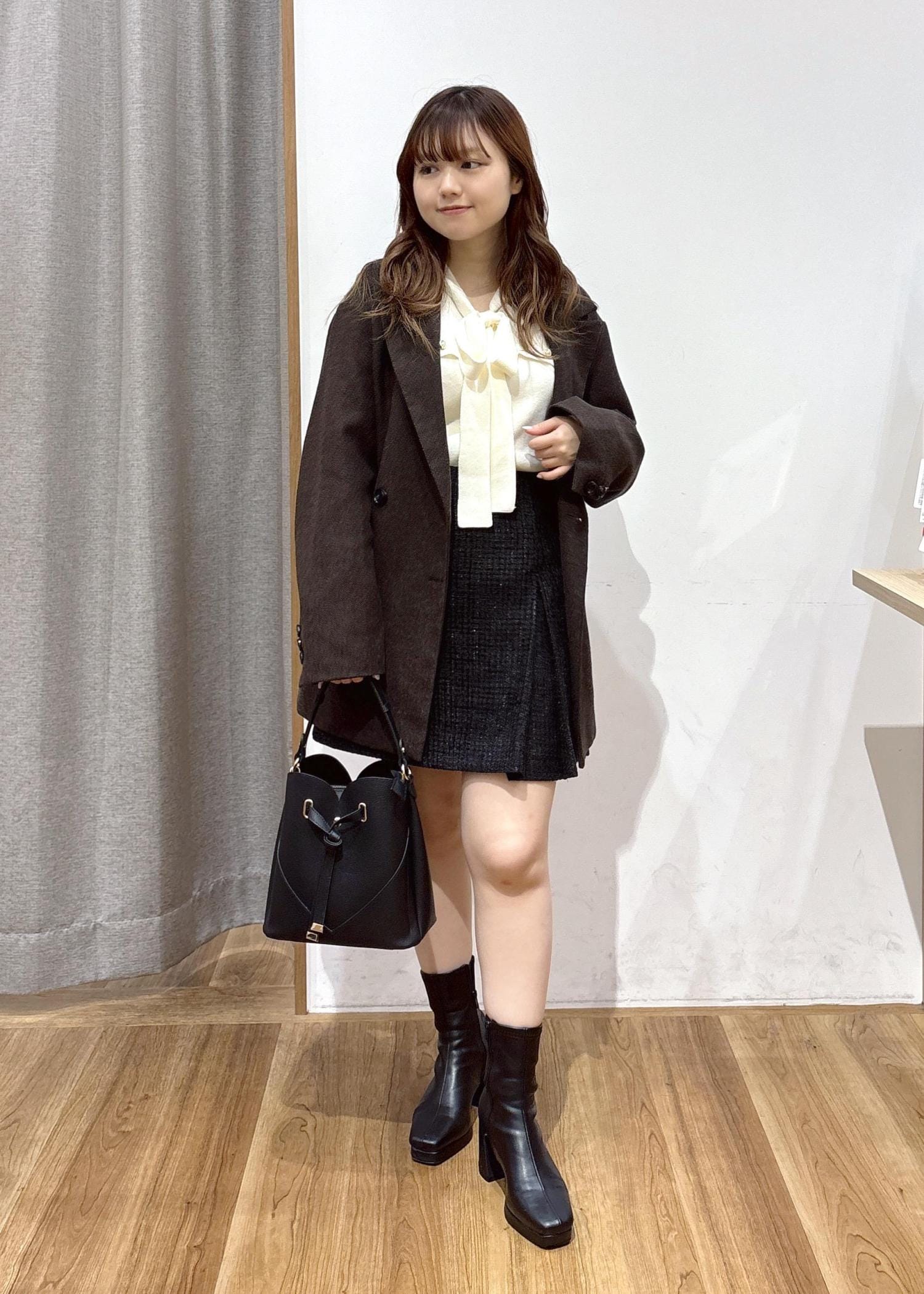 ニットのインナートップス、また春先まで使える薄手アウターを重ねることで暖かい雰囲気をイメージしてみした◎