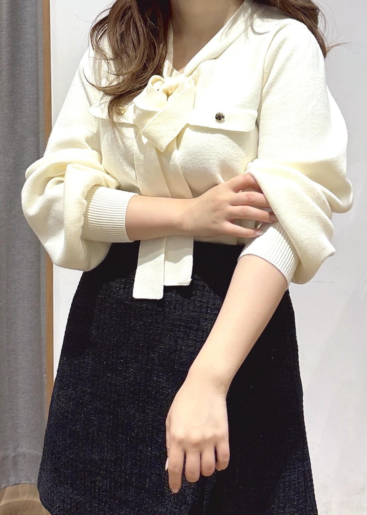 ふんわりとしたお袖のボリュームがかわいいニットトップスです。