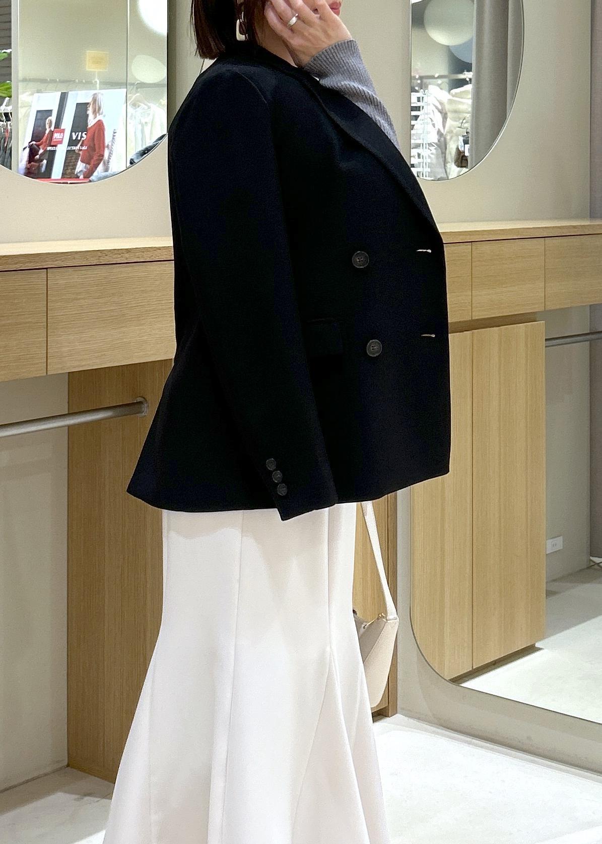 VIS【美easy】ウーリッシュダブルブレストテーラードジャケット【セットアップ対応/洗える】ブラック / S¥8,899レビュー151cm、Sサイズ着用でヒップが隠れる長さ。