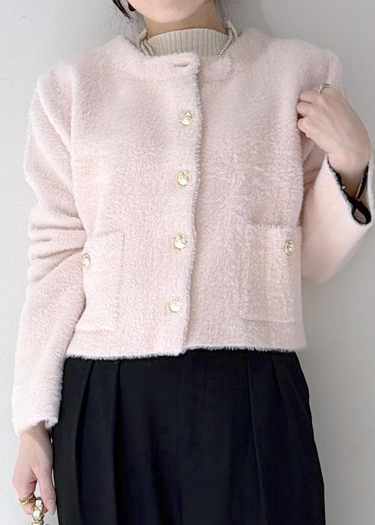 VIS接結ミニフェザーニットジャケットカーディガン/一部WEB限定カラーピンク系 / F¥6,919レビュー152cmで骨盤あたりの着丈でした!