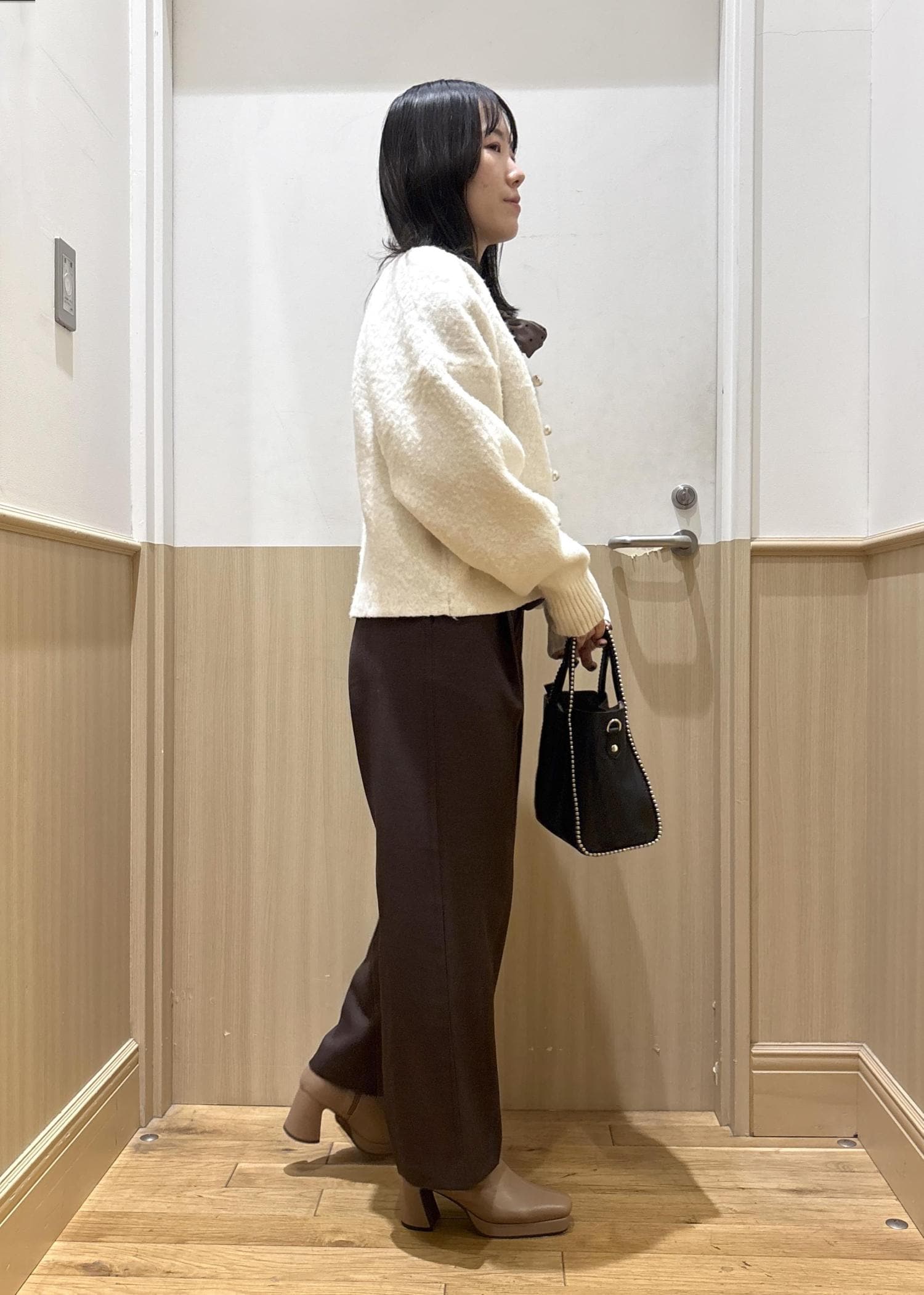 VIS【美easy】ウーリッシュワンタックワイドパンツ【セットアップ対応/洗える】ダークブラウン / SS¥6,589レビュー普段はSサイズですが、こちらはSSサイズ着用。