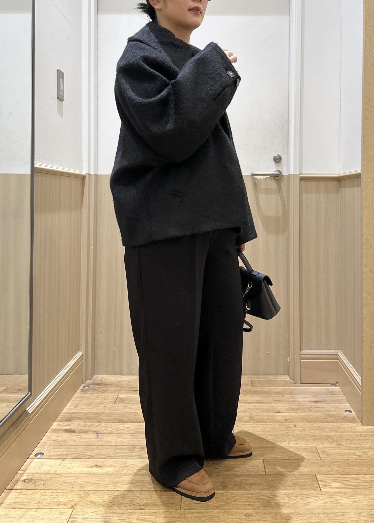 予約VIS【アウター総選挙1位】ビッグカラーモモンガシャギーショートコートブラック / M¥10,989レビューゆるっとオーバーサイズで着たい方にはMサイズがおすすめです◎