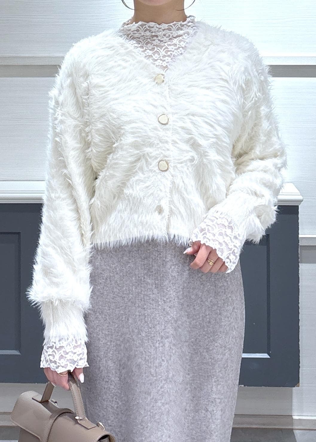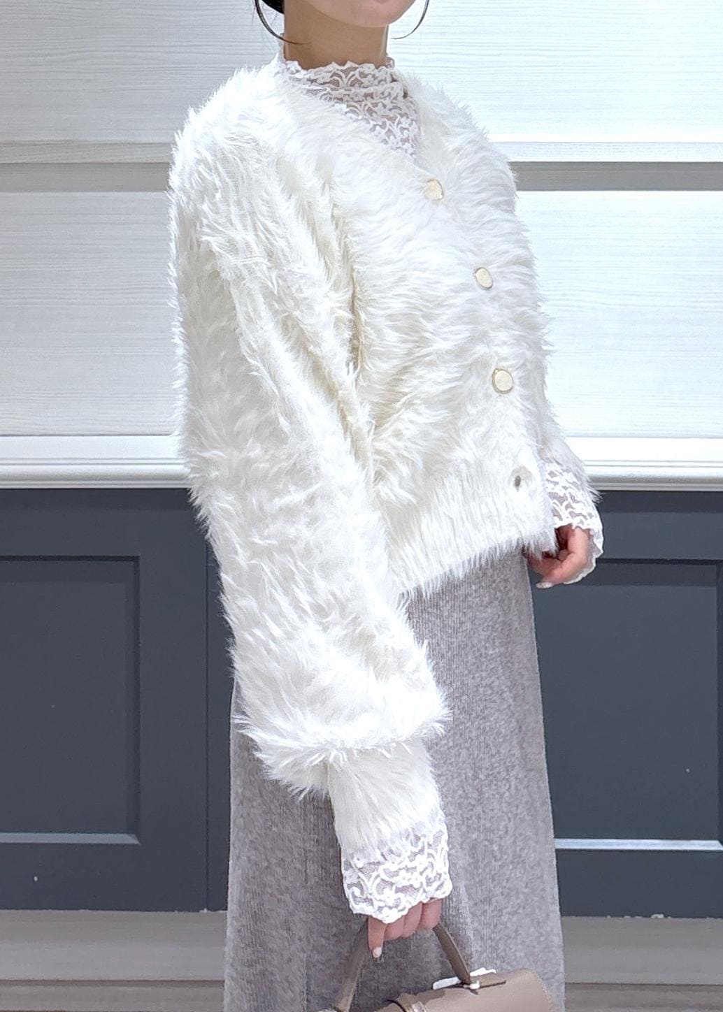 VISラビットライクVネックカーディガン/イージーケア・WEB限定カラーオフホワイト / F¥5,336レビュー156cmで腰が隠れる丈感でした。