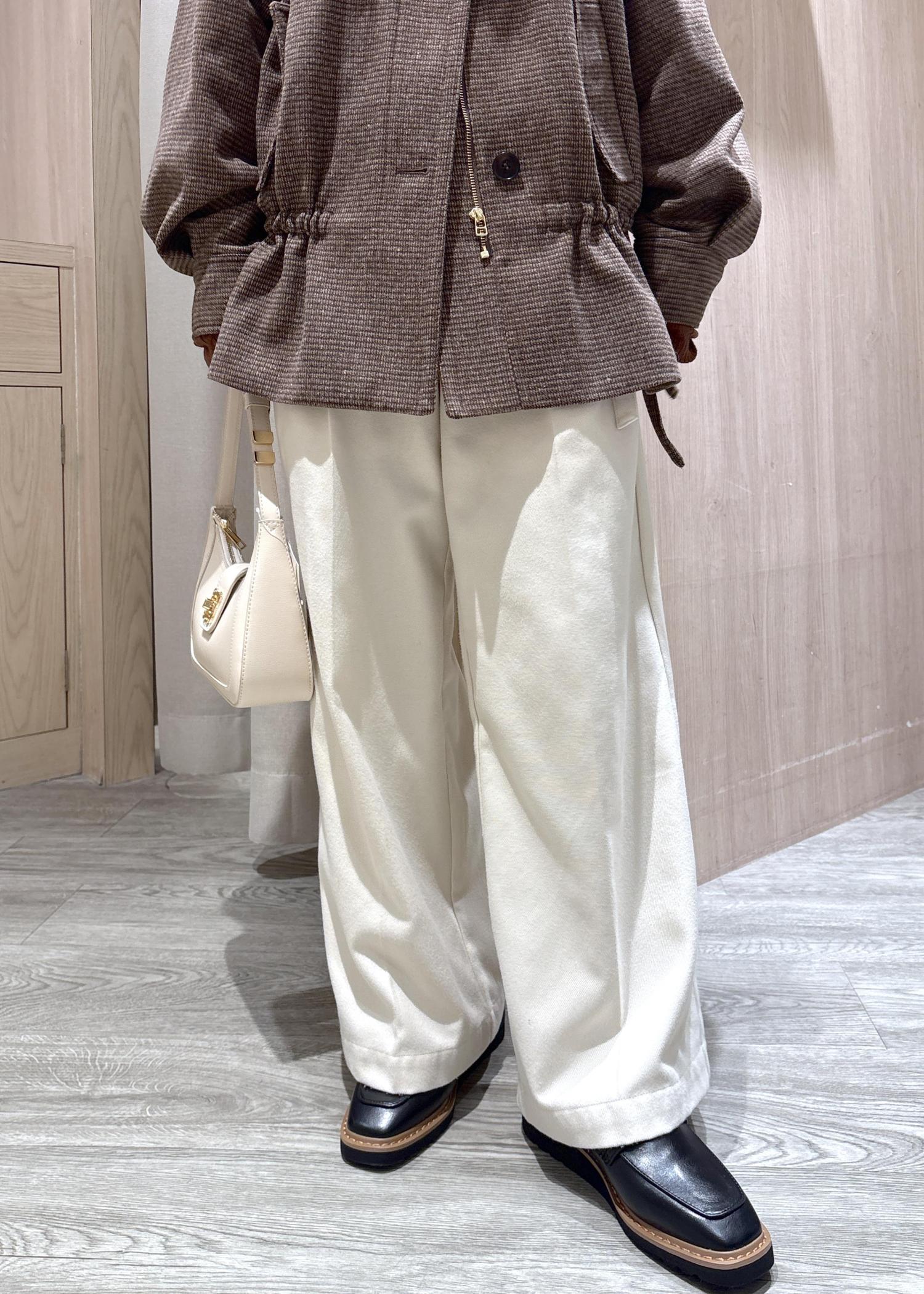 お尻や太もものラインを拾わないのでとても綺麗なワイドシルエットで着用できます! -