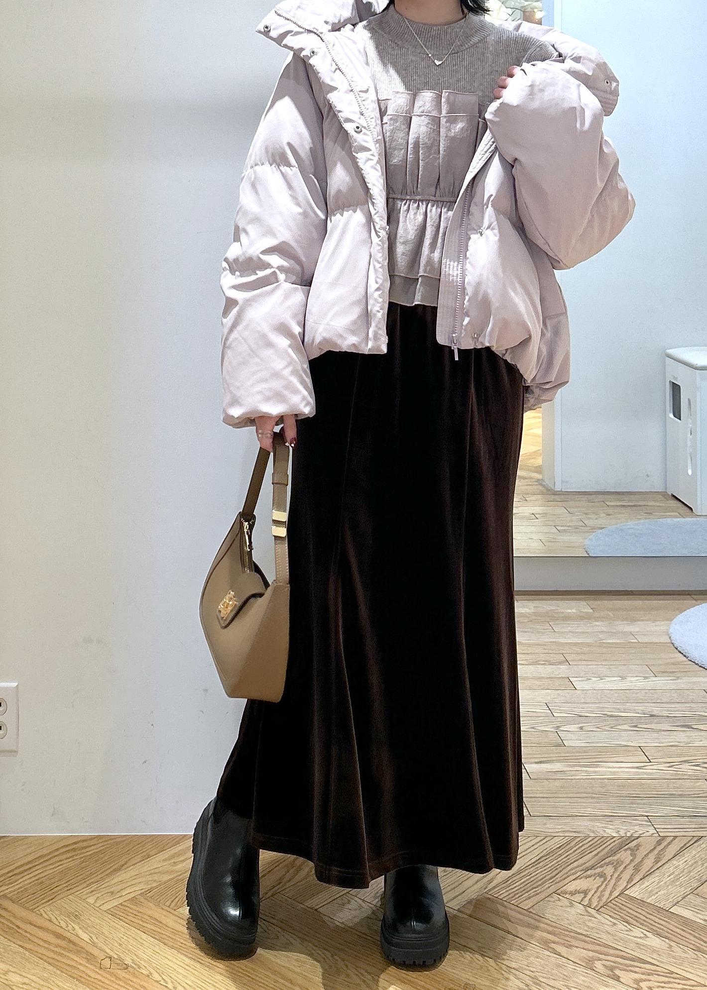 VISベロアナロースカートダークブラウン / S¥6,589レビュー身長157センチSサイズ着用でくるぶしくらいの丈。