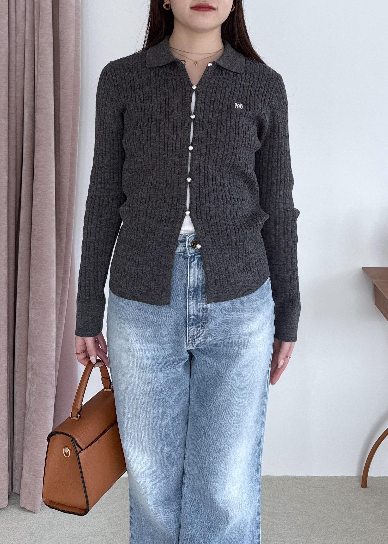 襟付きカーディガンで程良い肌見せで大人な印象に!