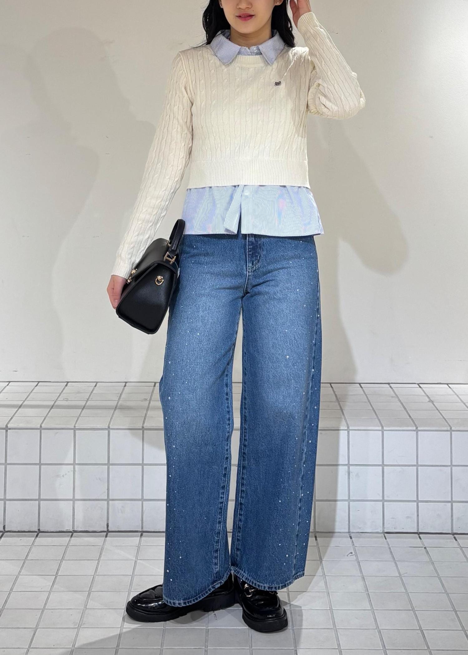 細すぎず太すぎずなストレートシルエットなのでバランスをとりやすく、トップスを合わせやすいです◎ -