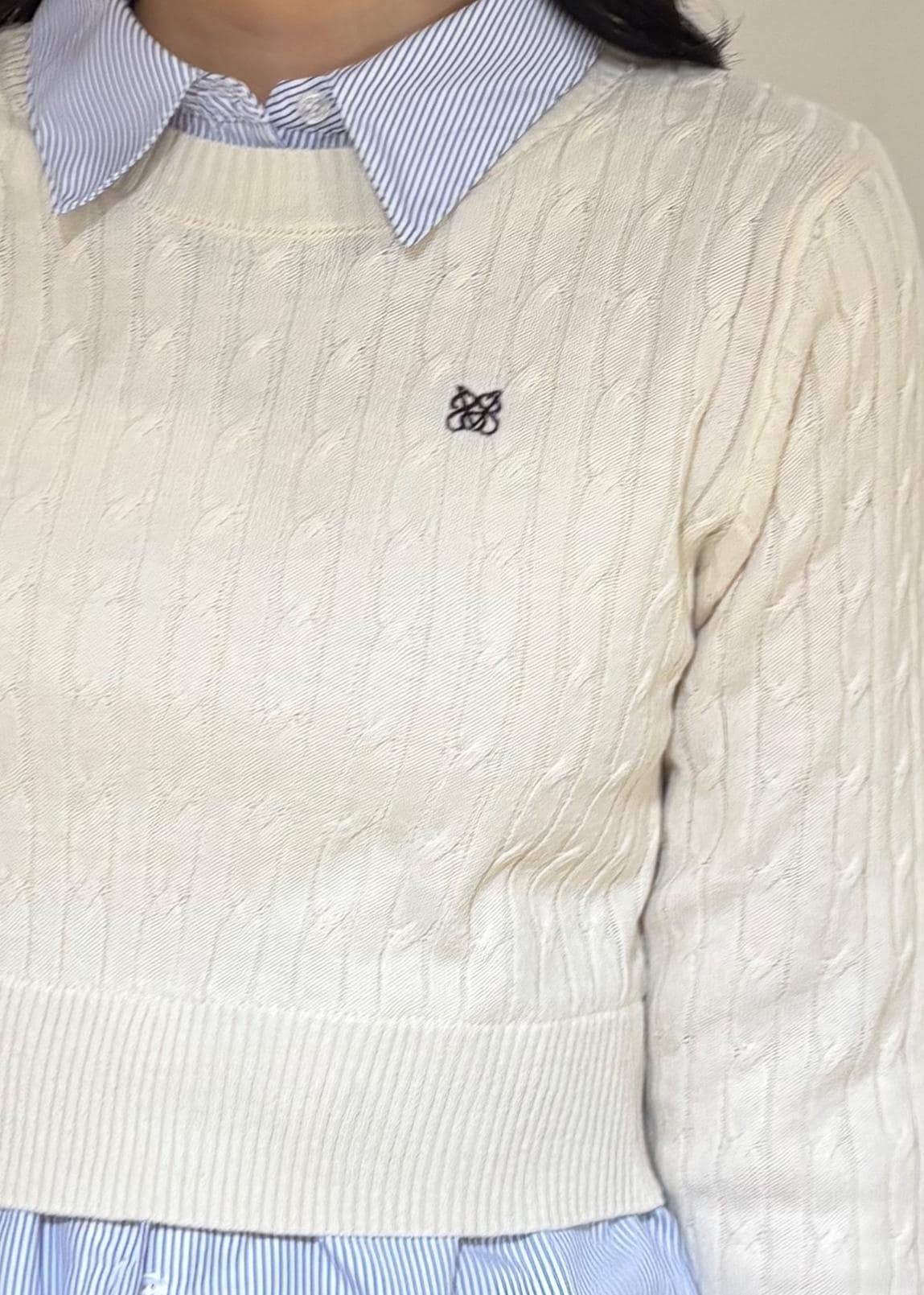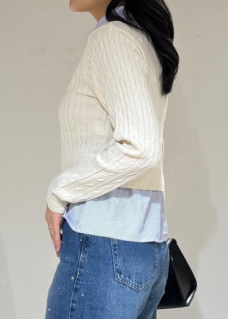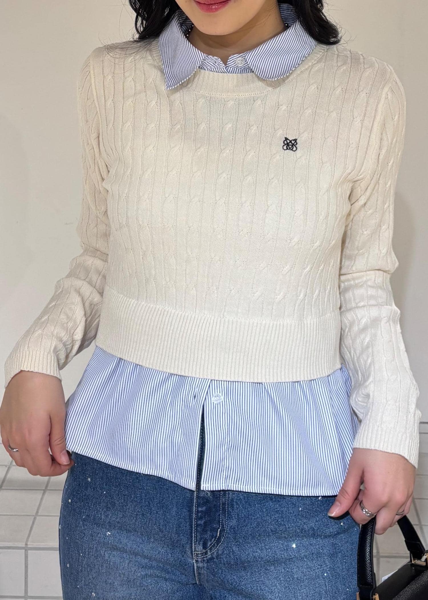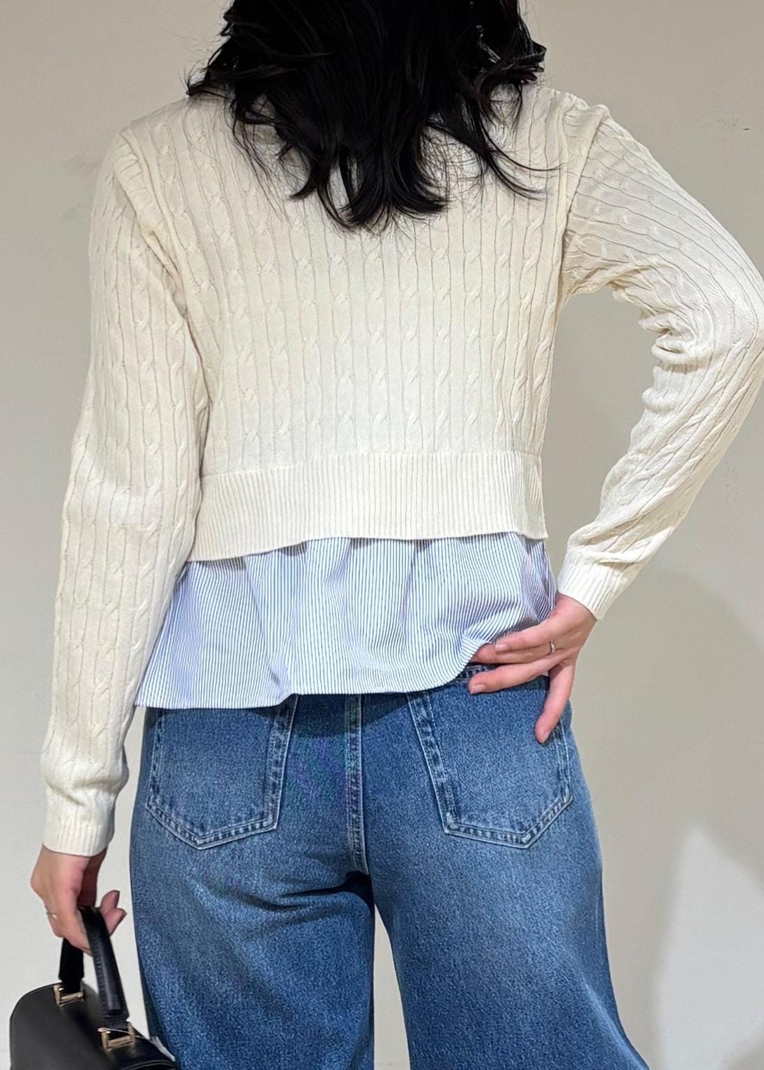 2BUY10%OFFVIS【美得】ハイゲージケーブシャツドッキングプルオーバーキナリ / F¥4,940レビューシャツがドッキングされているニット