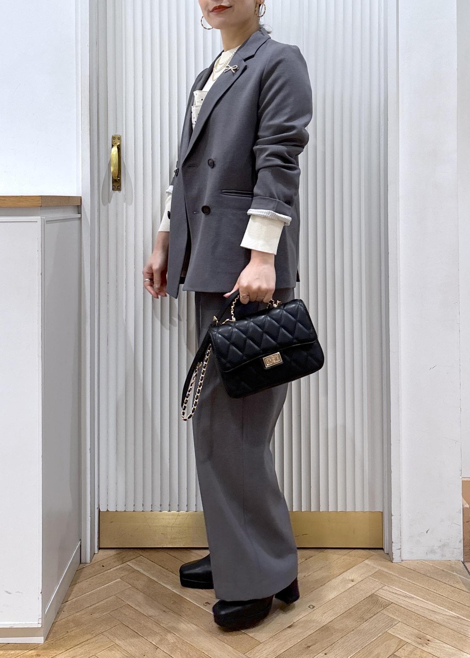 ジャケットを脱いでも抜かりなしのキレイママコーデ!小物はパールやキルティングで周りと差をつけて♪