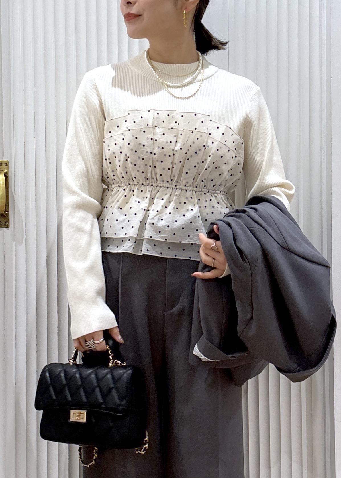 ビスチェのデザインは甘めですが、ベースはリブニットなのでもちろんカジュアルにも着回しOK! -