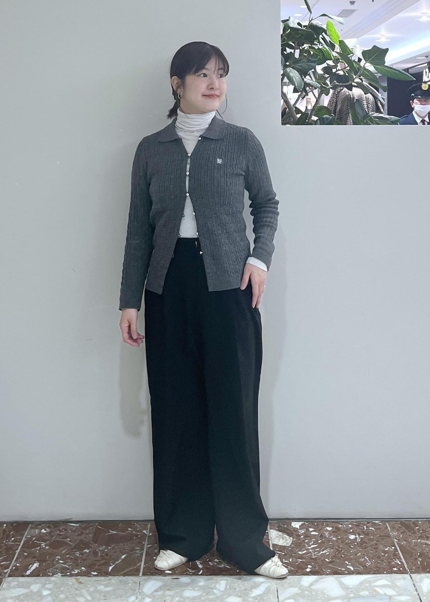 VISポロ衿ケーブルカーディガンチャコール / F¥5,929レビューアクリル素材の配合なので冬から春先まで着られるあったかいニットカーディガンです。