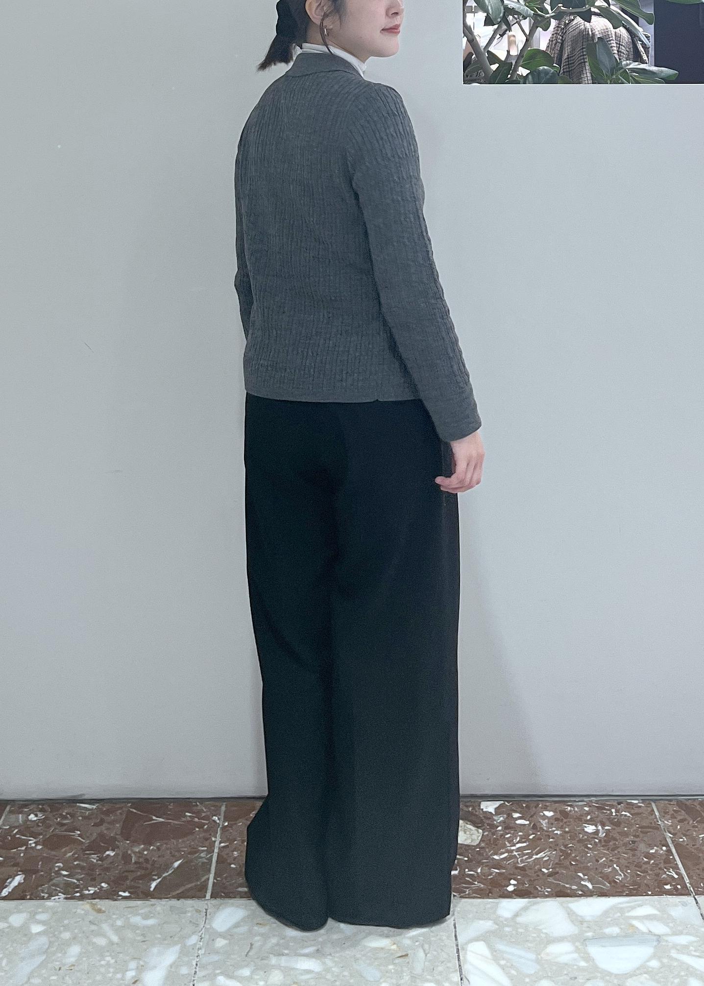 ボタンを開けたり閉じたりすることでいろんなボトムとのバランスに合わせやすいです。