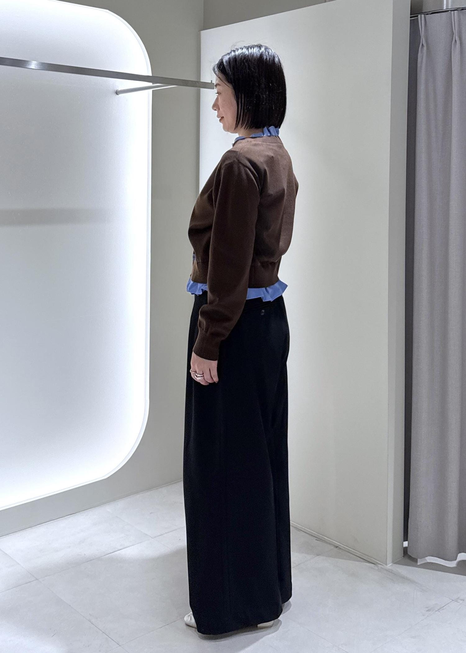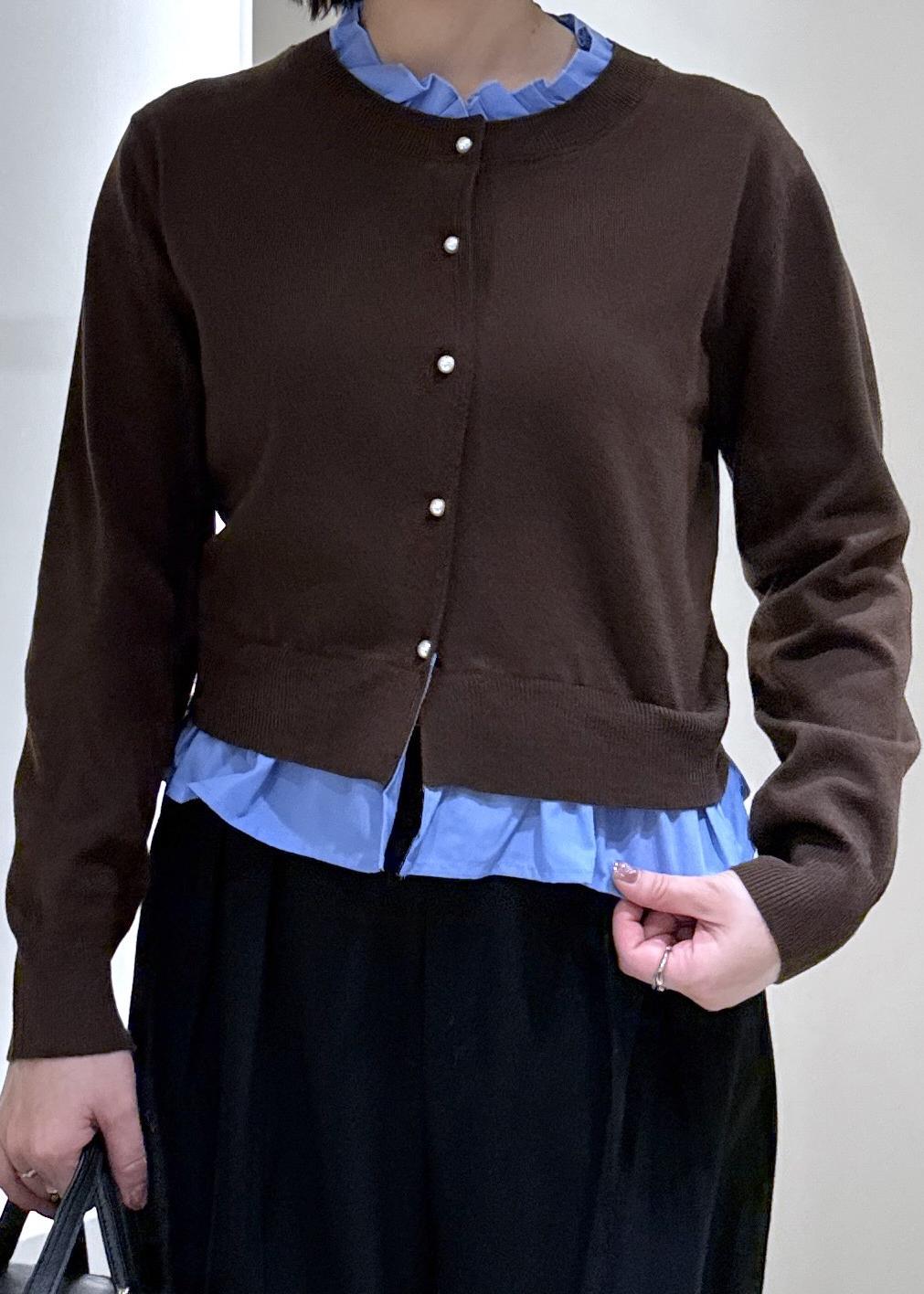 2BUY10%OFFVIS【美得】フリル襟ドッキングニットカーディガントップスダークブラウン / F¥5,929レビュー165cmの身長で腰上くらいの丈感です。