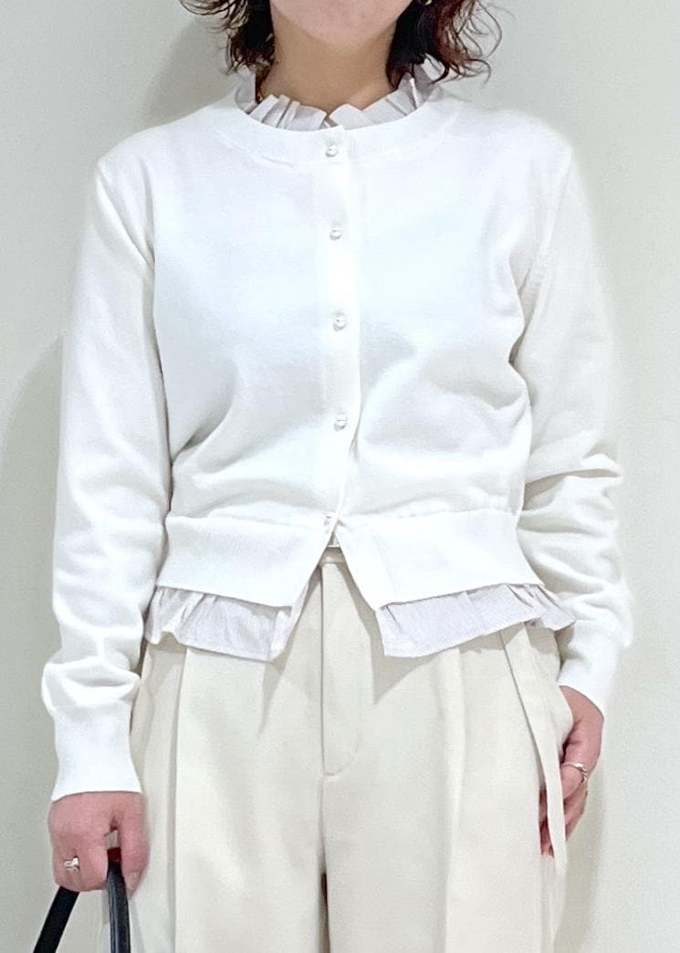 VIS【美得】フリル襟ドッキングニットカーディガントップスオフホワイト / F¥5,929レビュー1枚でレイヤードが叶うドッキングニットです!