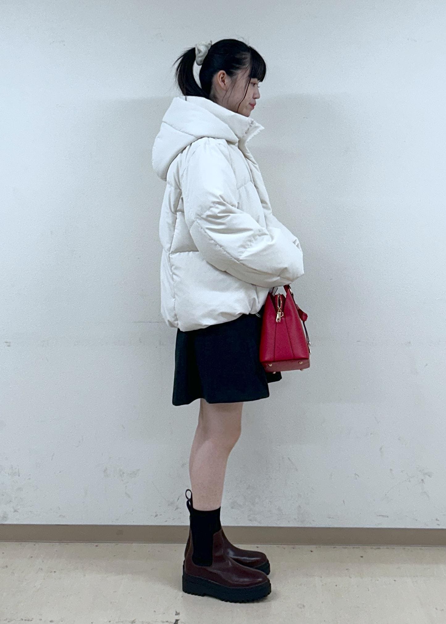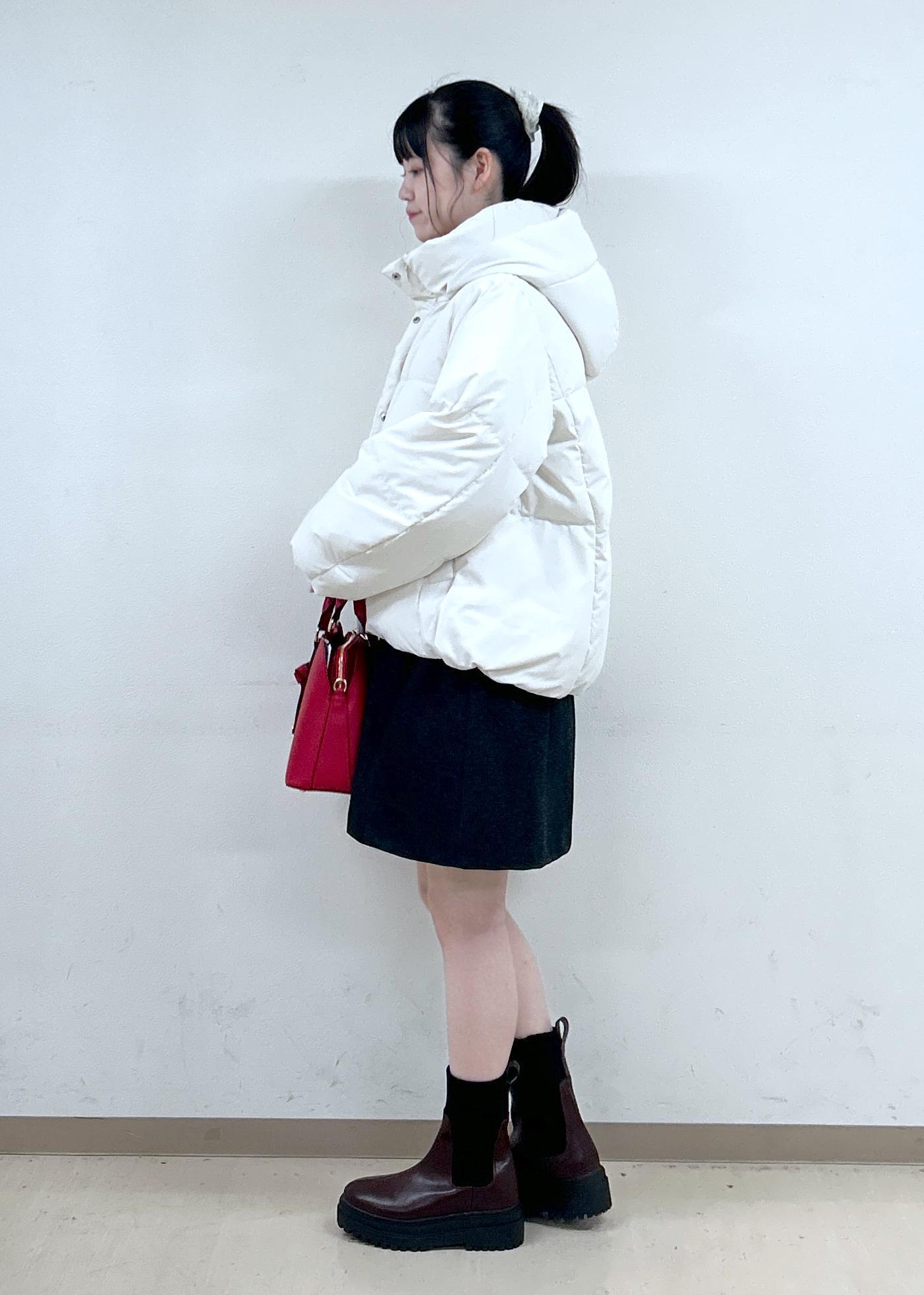 ミニ丈なのでロングブーツやハイソックスとの相性が良く、冬の脚見せコーデにピッタリです。 -
