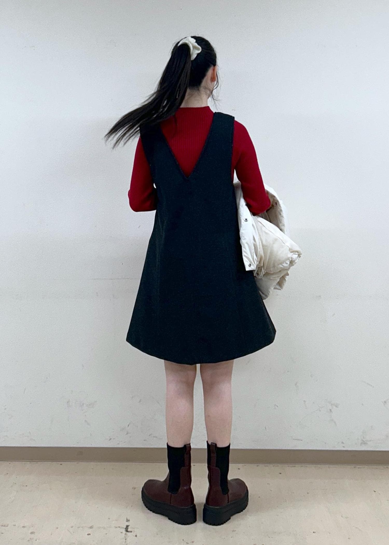 VISシャギーVネックミニ丈ジャンパースカートチャコール / F¥6,327レビューAラインのシルエットで腰周りがカバーできるので大人の方や骨格ウェーブさんには嬉しいポイントです!