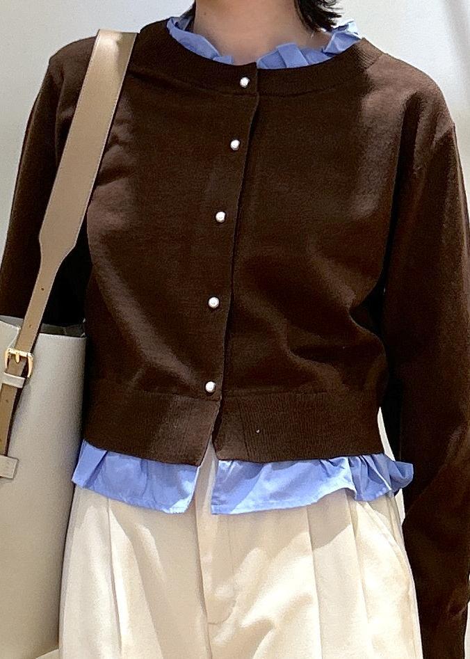 VIS【美得】フリル襟ドッキングニットカーディガントップスダークブラウン / F¥5,929レビュー一枚でトレンドのレイヤード風に♡