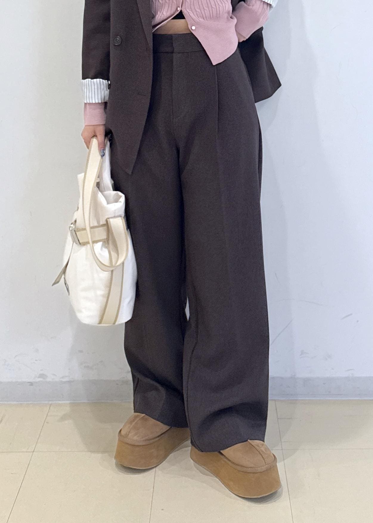 【期間限定価格】美easyウーリッシュワンタックワイドパンツ【セットアップ対応/洗える】