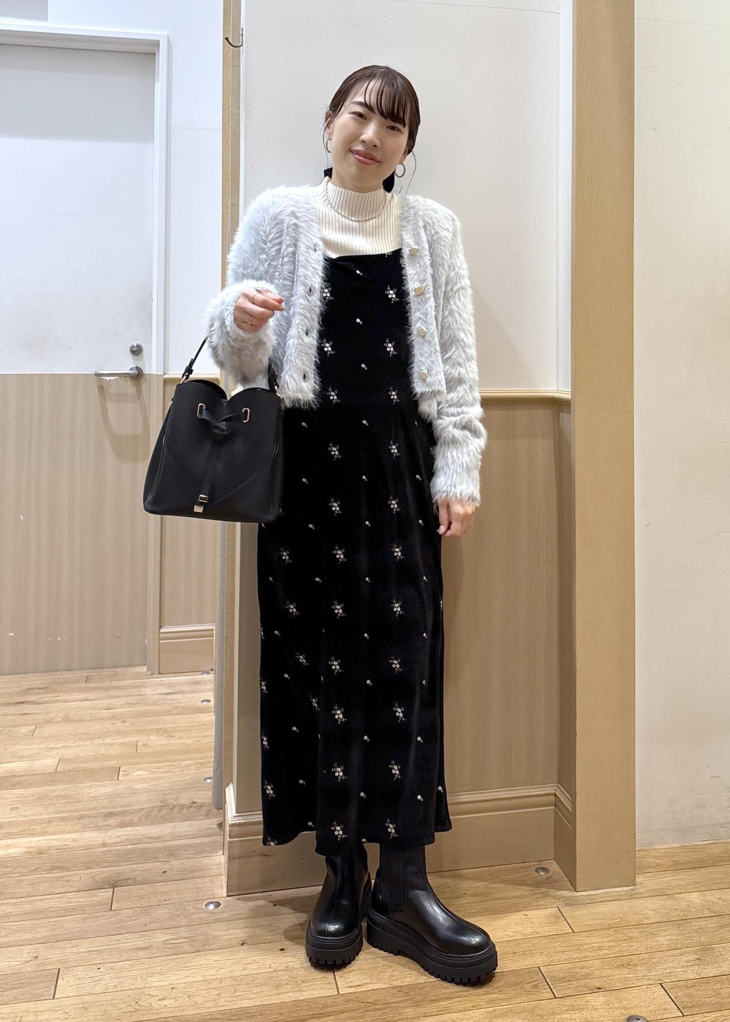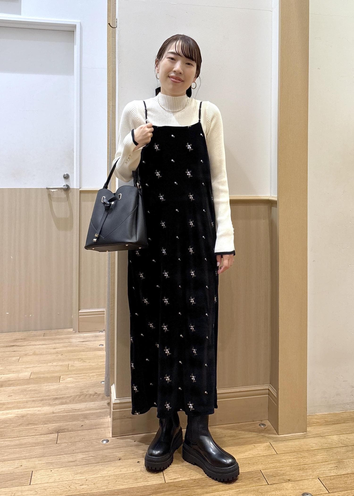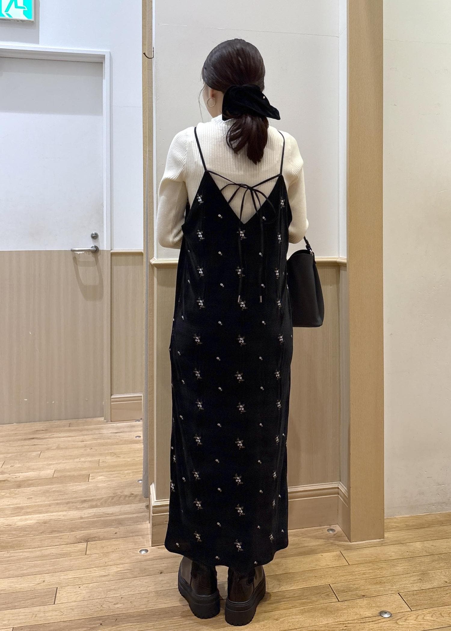 VIS刺繍アソートベロアキャミワンピース/2WAYブラック系 / F¥8,899レビュー季節感が増すベロアのワンピースです!