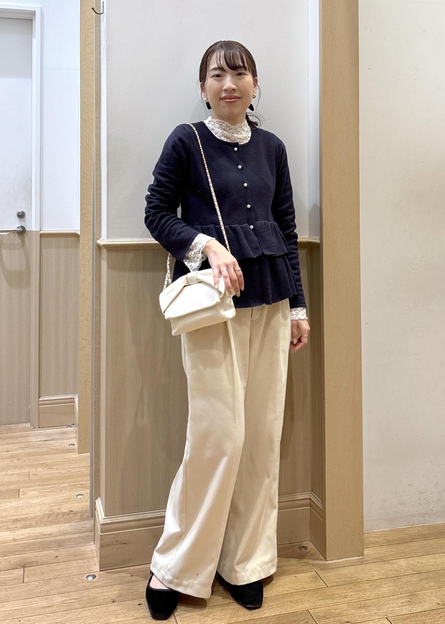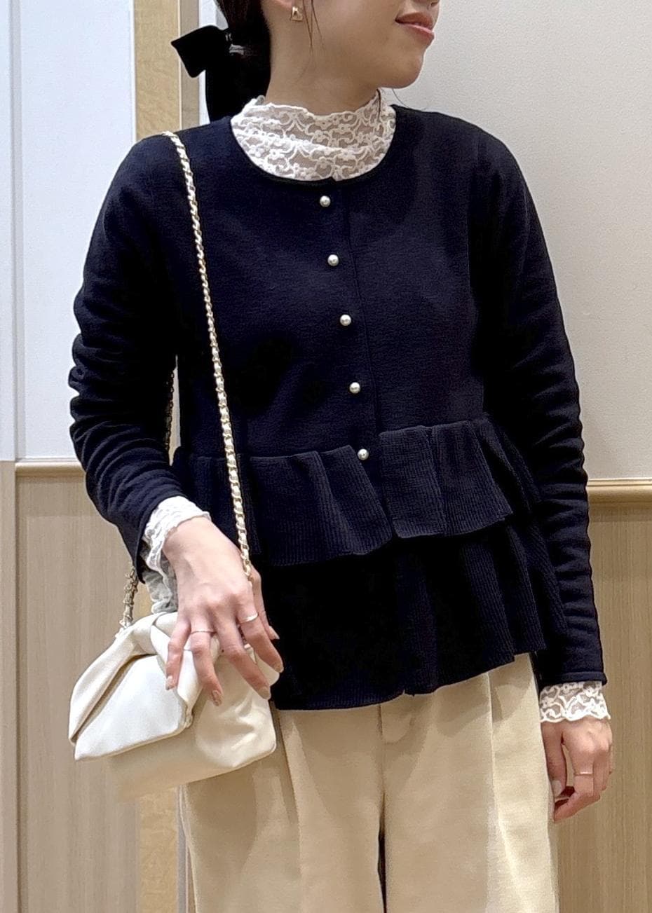 VISティアードペプラムニットカーディガンネイビー / F¥6,589レビューパール釦が可愛いペプラムトップス♡