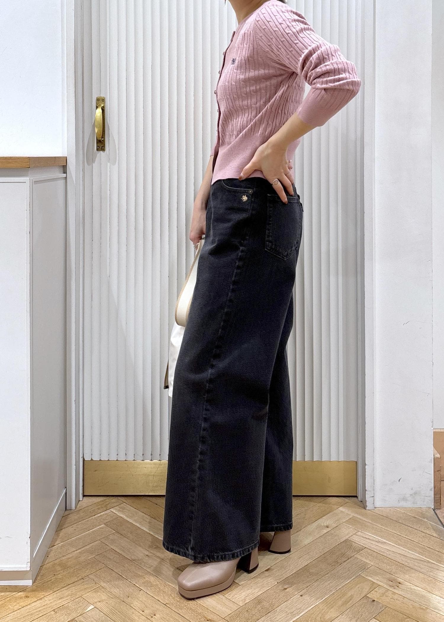 スモーキーなピンクとブラックデニムを合わせた大人のカジュアルコーデ♡