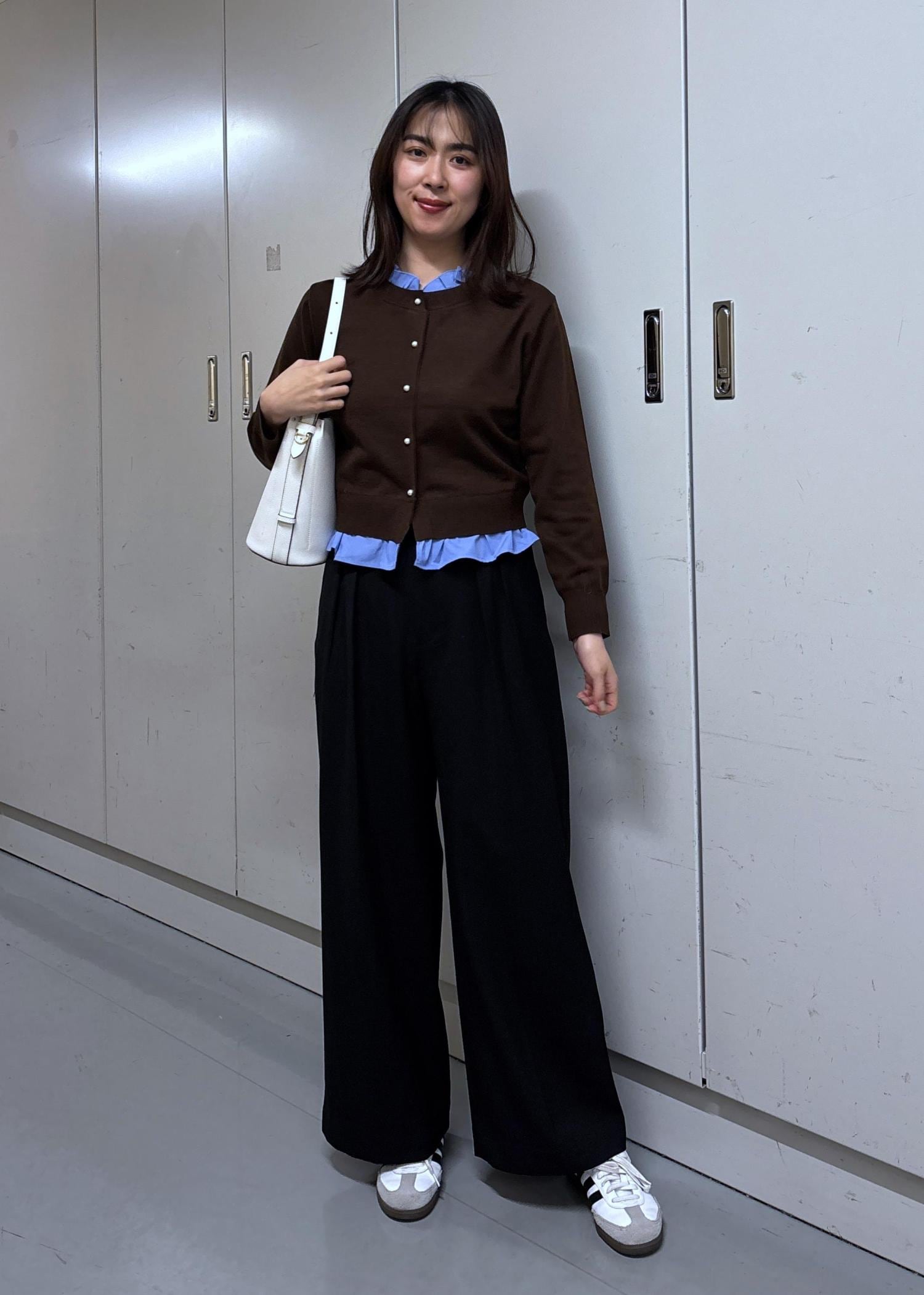 2BUY10%OFFVISブローチ付きアソートファーブルゾンブラウン / F¥11,264レビュー156cm/F着用。着丈はおしりに少しかかる長さで、袖丈は手が隠れる長さです。落ち着いた茶色のモコモコブルゾンは大人っぽく着られるデザイン‼︎ボリュームはありますがコンパクトな丈感なのでワイドパンツも合わせやすいです◎軽くて、首もしっかり隠れるのでマフラーなしで温かく着られるのも嬉しいです♪