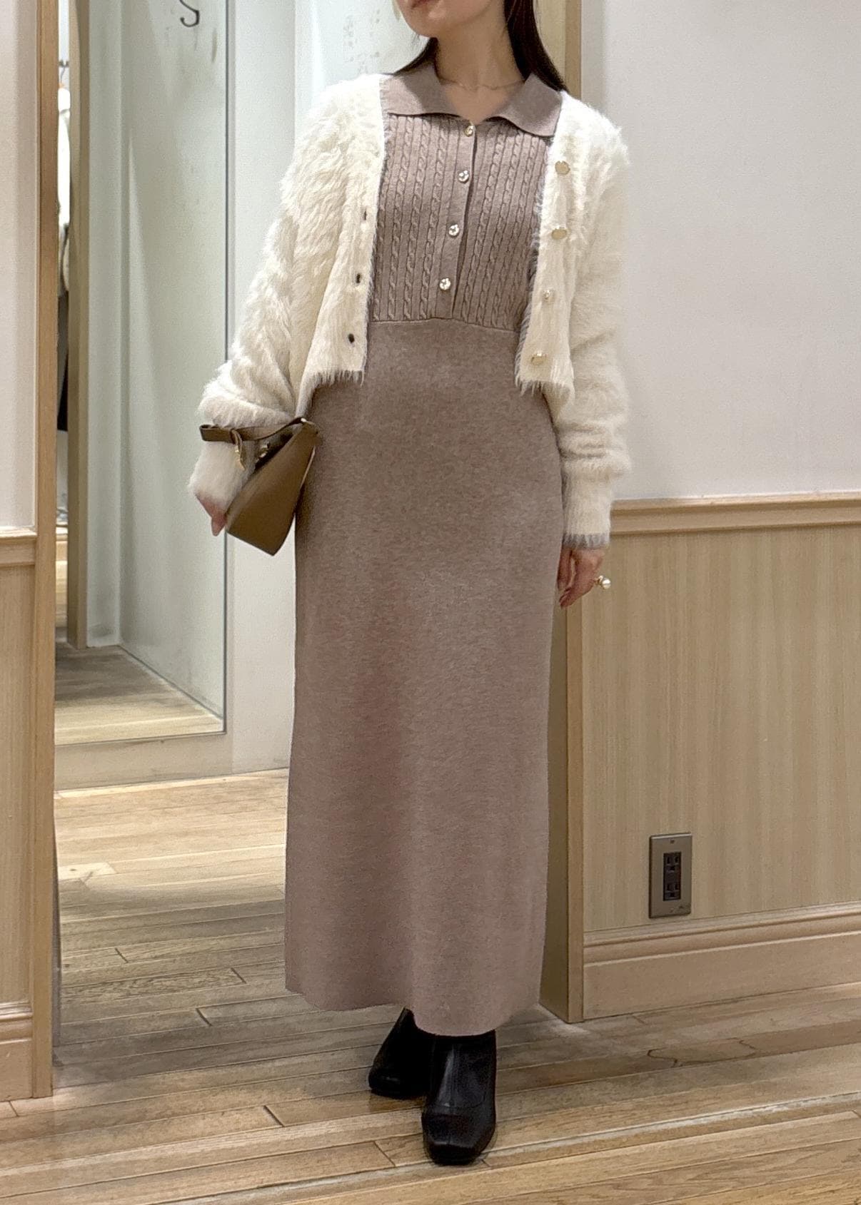 VISポロケーブルモチモチニットワンピースベージュ系 / F¥7,119レビューふわふわでずっと触っていたくなる滑らかさです♡