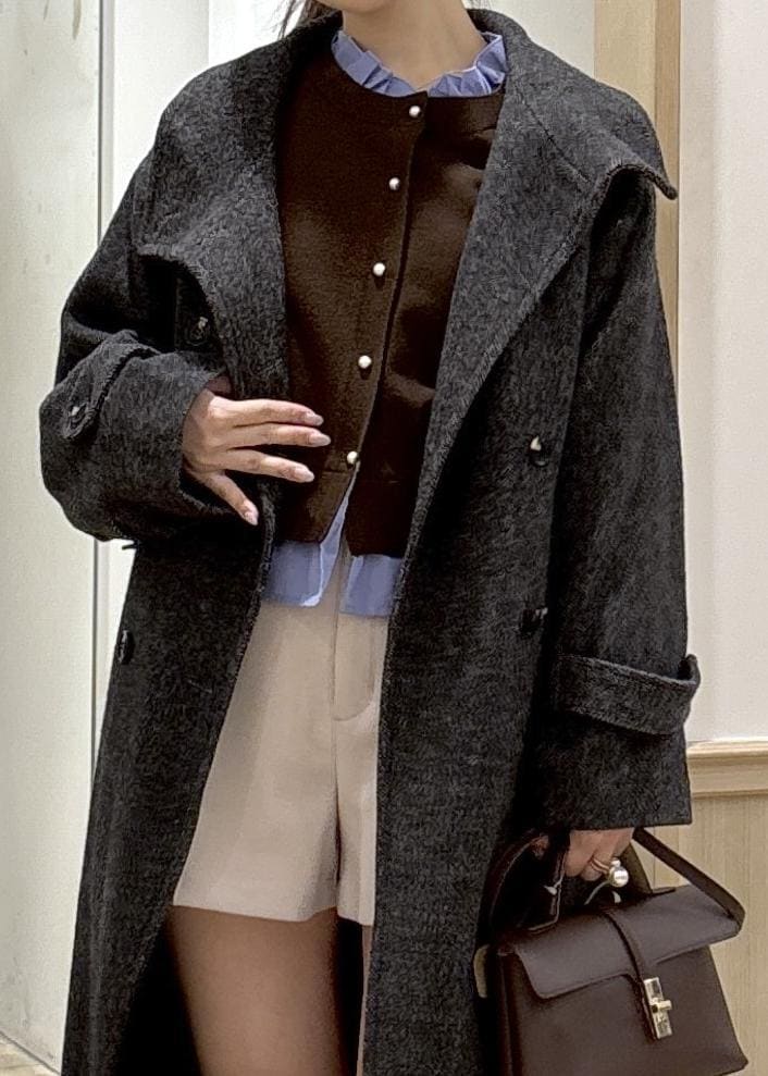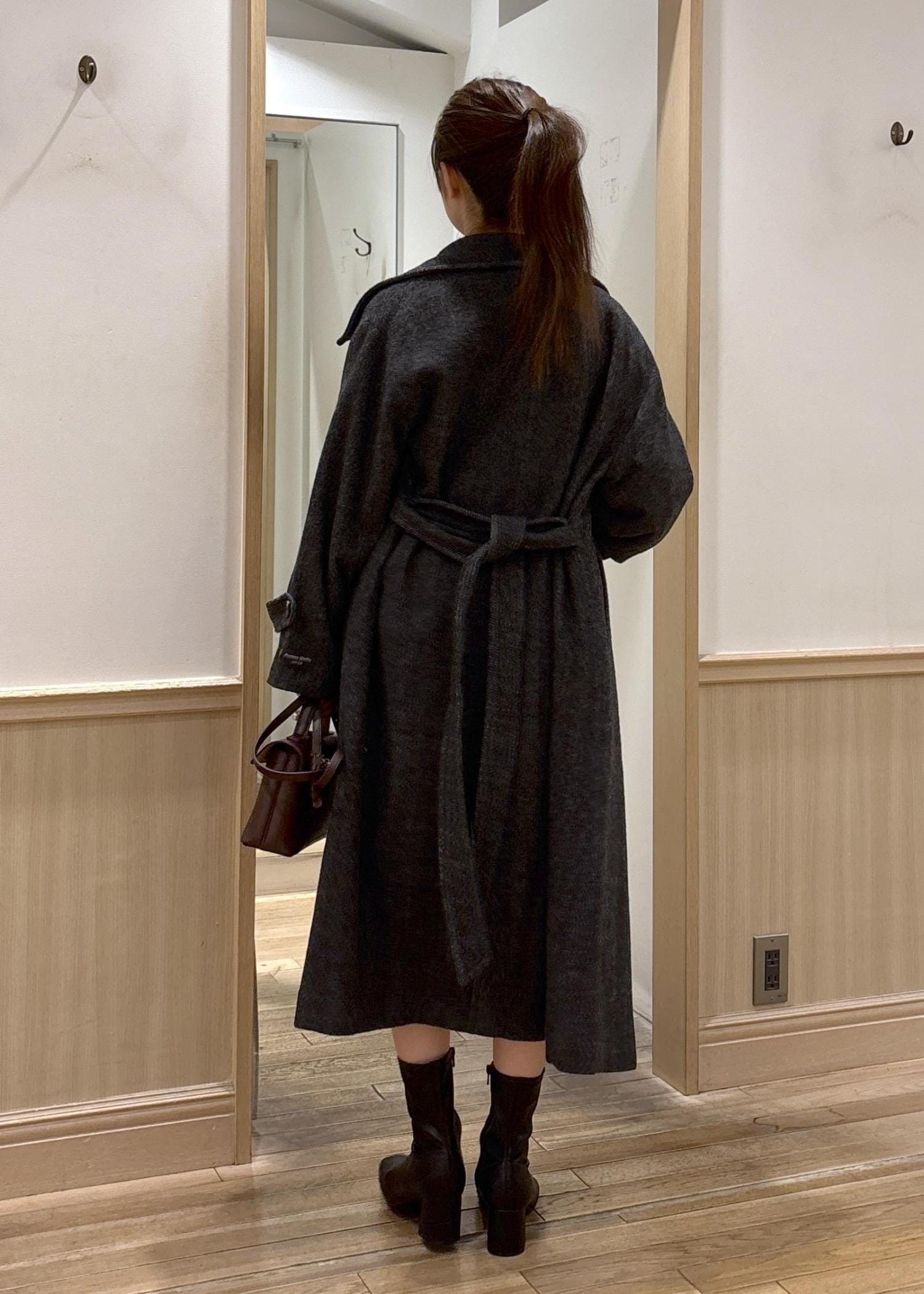 VIS尾州シャギースタンドカラーロングコート/静電気防止・WEB限定PS・TMサイズチャコール / S¥17,512レビュー158cm、ブーツはヒール5cmのものを着用してSサイズ着ています。