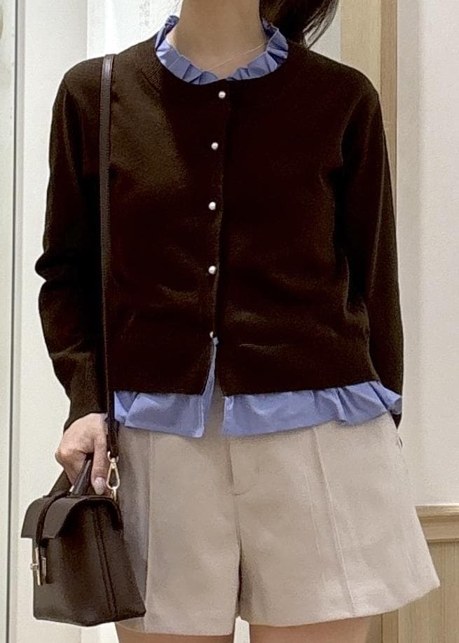 VIS【美得】フリル襟ドッキングニットカーディガントップスダークブラウン / F¥5,929レビュードッキングなので1枚でスッキリ着映えします♡