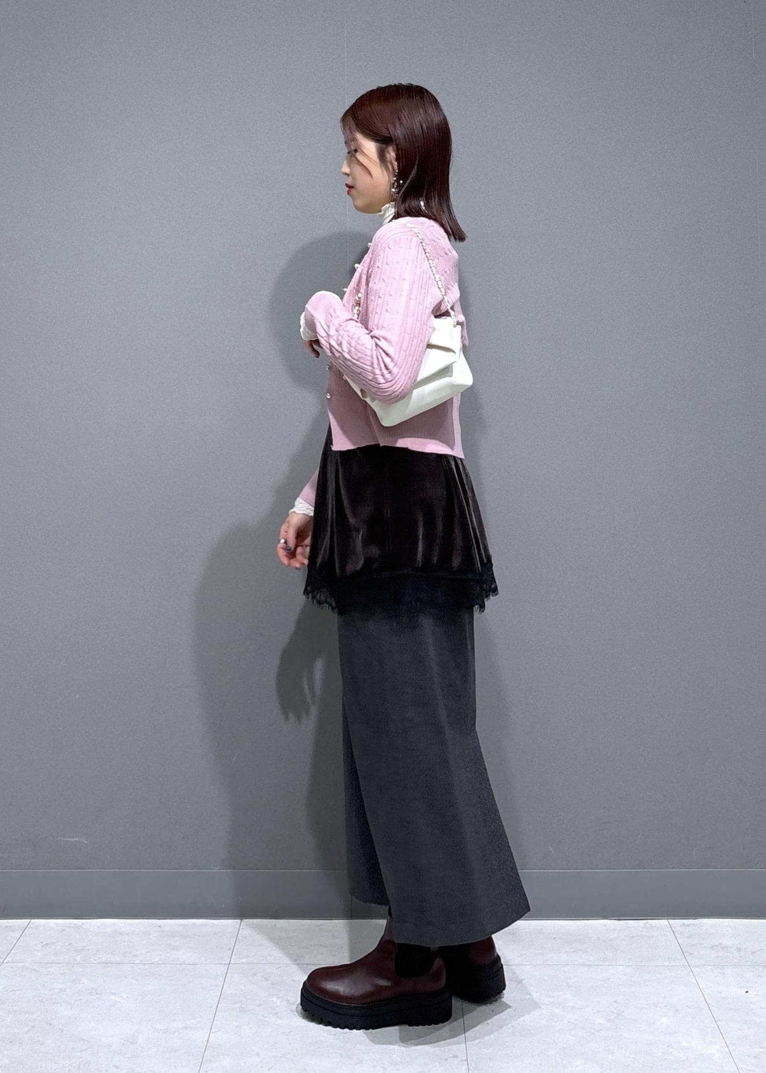 袖が少し長めなので、レイヤードしてレースを見せるのがおすすめです◎ -