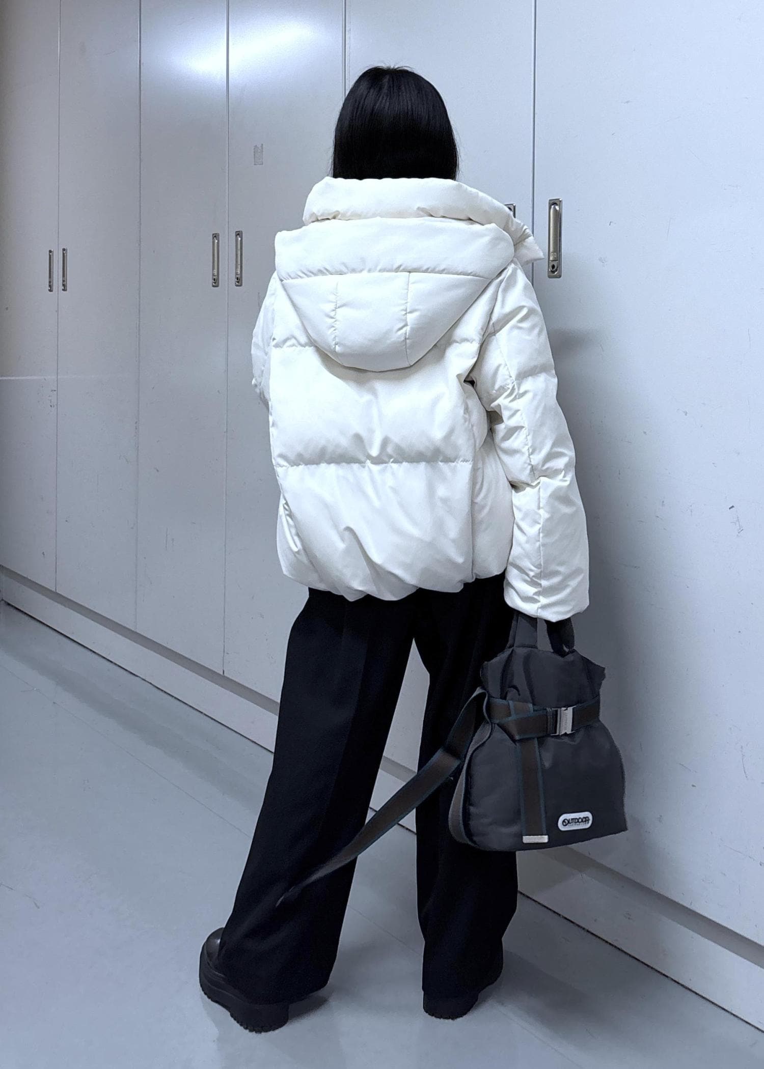 リアルバイしたニットとパンツに、白のダウンを羽織りました☆