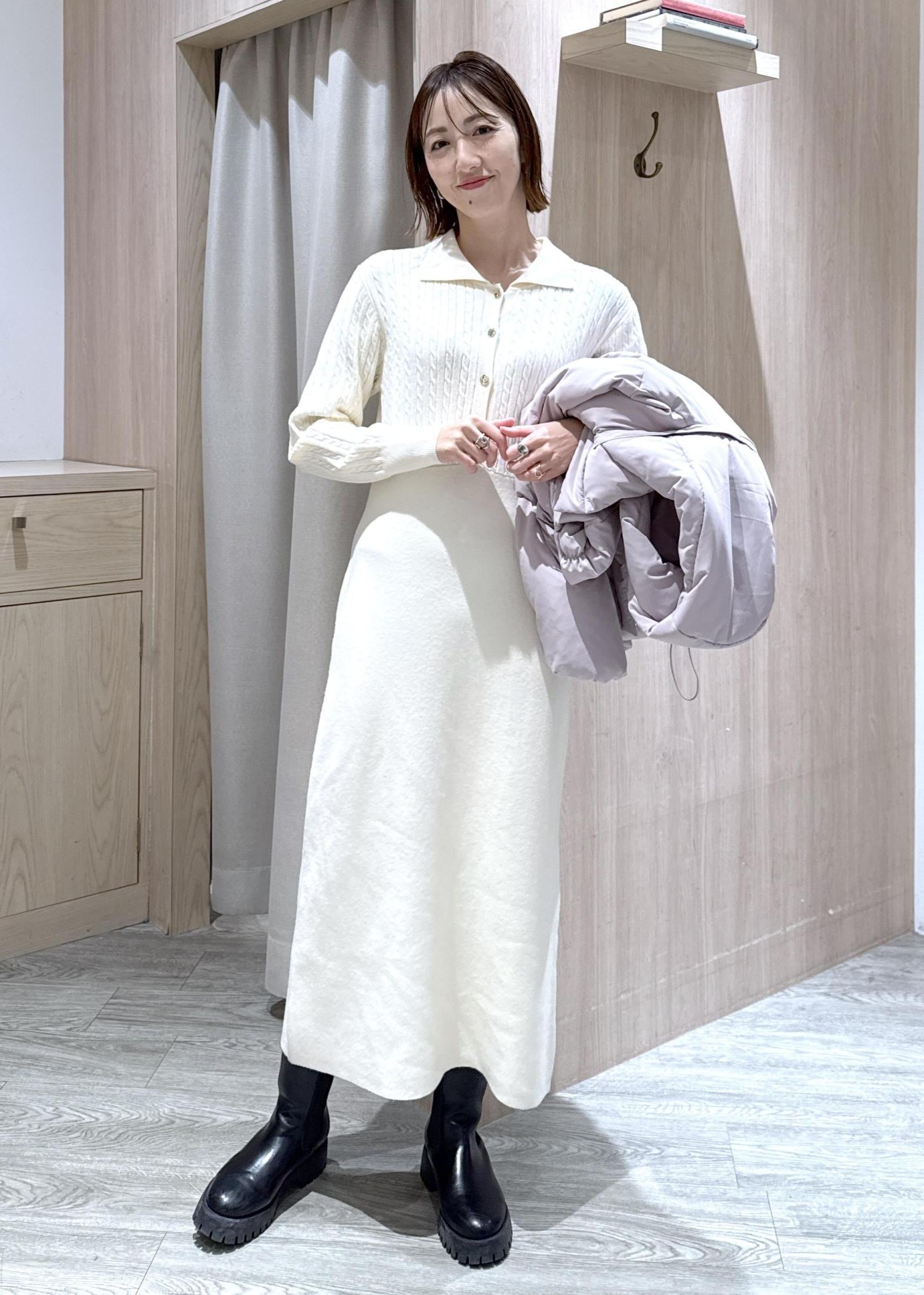 2BUY10%OFFVISポロケーブルモチモチニットワンピースオフホワイト / F¥7,119レビュー身長166センチでふくらはぎ下の長さでした。
