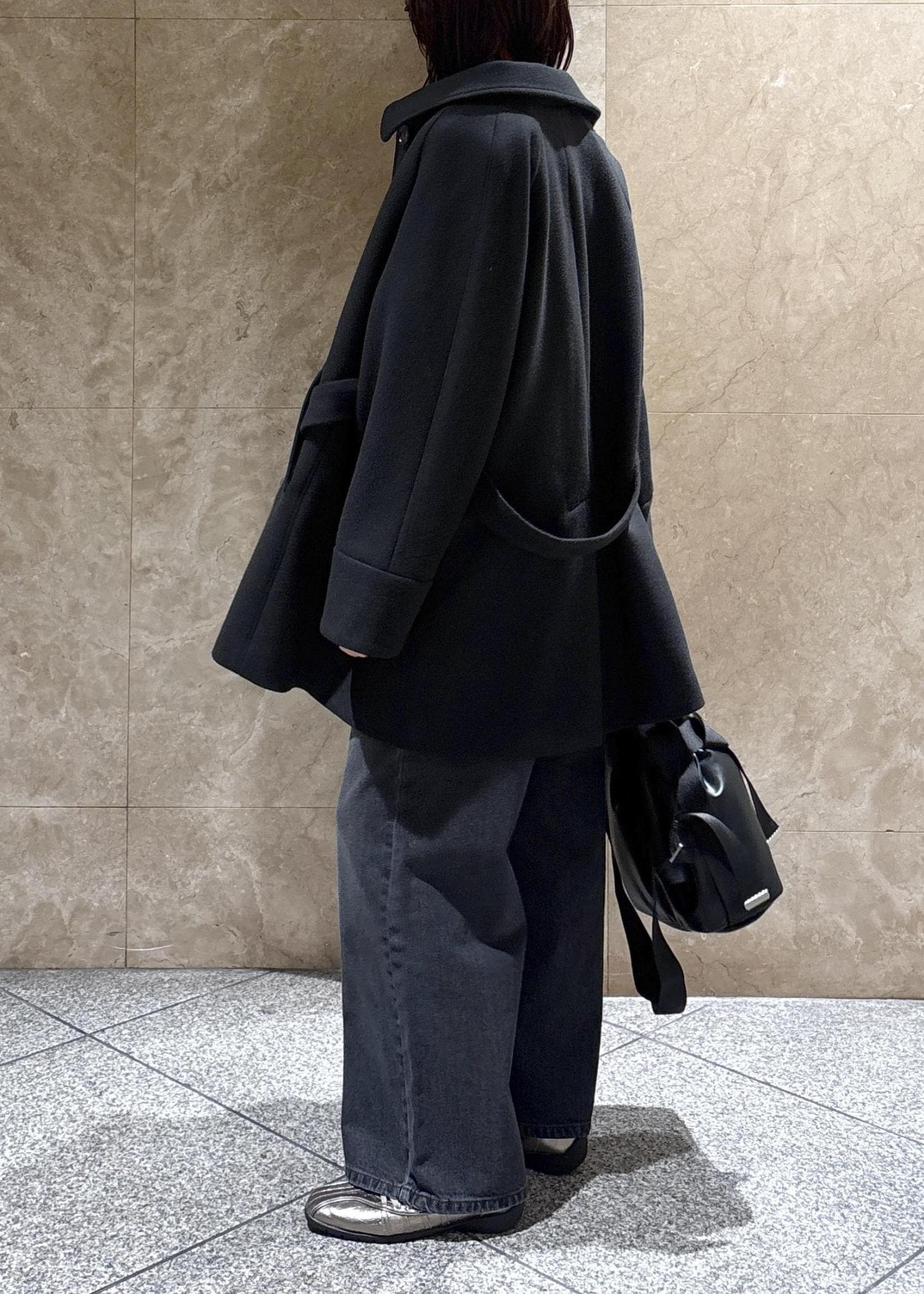 2BUY10%OFFVIS【アウター総選挙2位】フレアーチェスターコートブラック / F¥11,264レビュー太ももの付け根あたりも隠れる長さ。