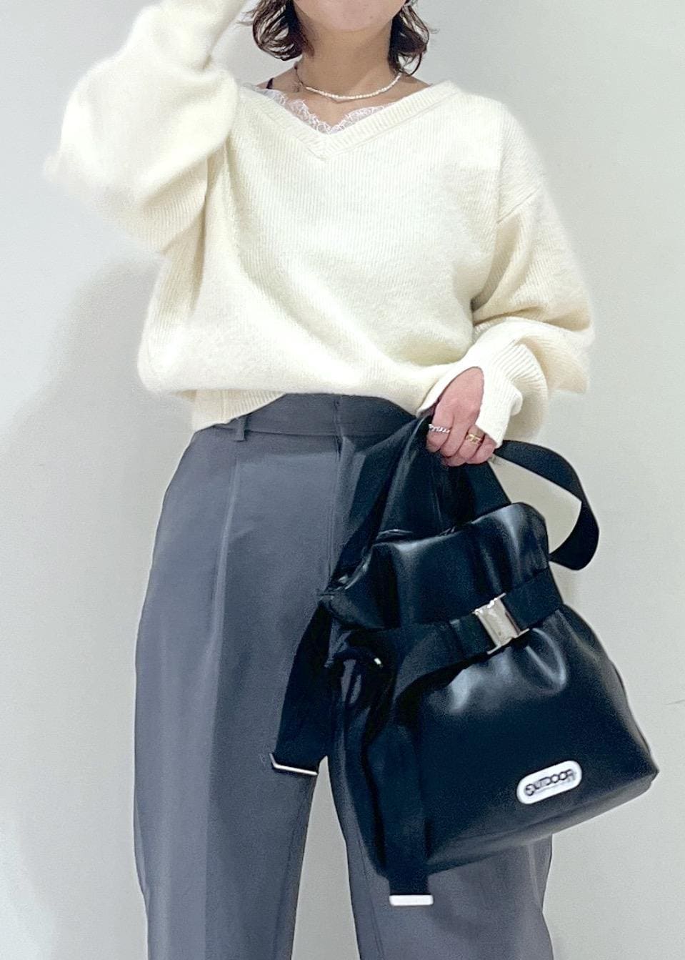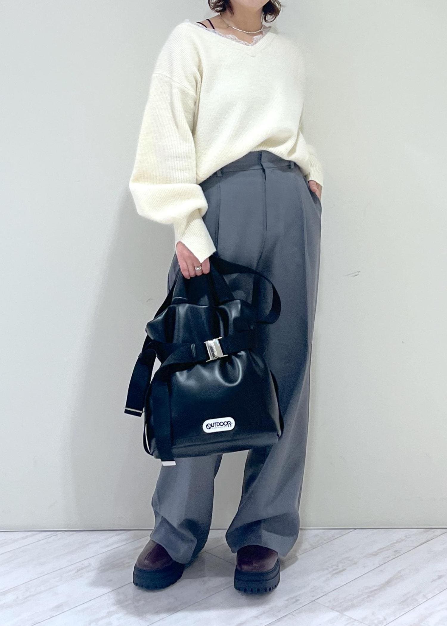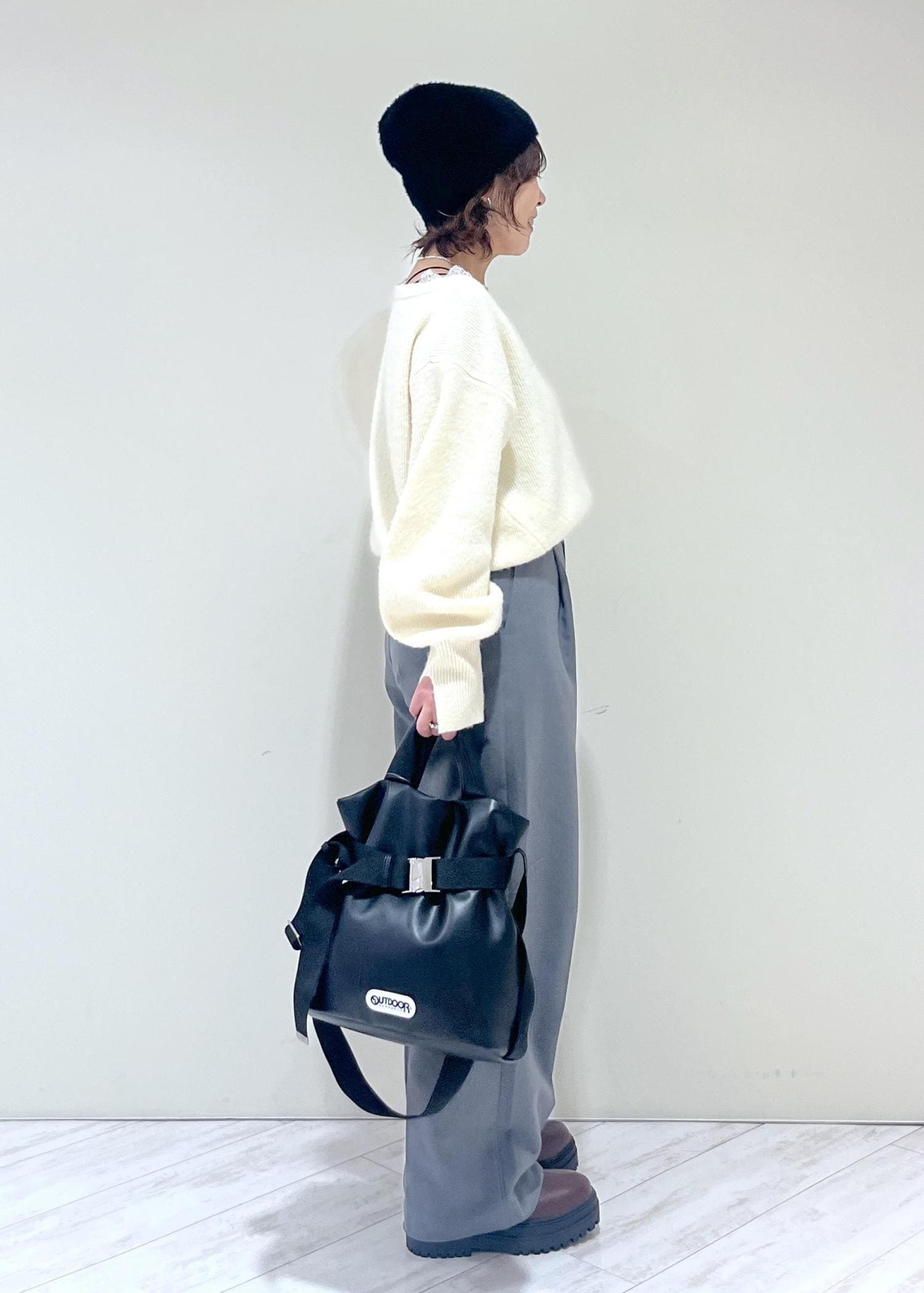 シンプルなコーデもOUTDOOR別注bagとニット帽で一気にオシャレ見えに!!